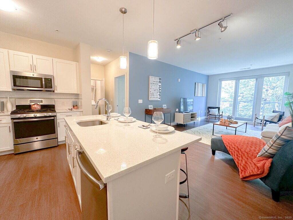 Call for Availability - Complex is Element One - Short/Long term-Like New 2 br 2 bth apartment home in luxury midrise bldg. w/ modern design and upscale features in the heart of vibrant downtown Stamford! This unit has a gourmet eat in kitchen w/ high end cabinetry, tile backsplash, quartz countertops, stainless steel appliances- gas stove, dishwasher, microwave, breakfast bar that opens into sunfilled living/dining area w/ walls of glass & plenty of sunlight, master br suite w/ walk in closet and private full sized luxury bathroom, gleaming hardwood floors, generous sized 2nd bedroom w/ private large bathroom and lots of closets- fresh paint, 9ft ceilings, central air, laundry inside the apt, professional gym w/ cardio/weight equipment, fitness on demand, roof top deck w/ grills/patio furniture, clubroom, 2 chefs kitchens perfect for demonstrations or entertaining, conference room w/ boardroom seating/tv/presentation equipment, Wifi coffee bar, multiple lounges w/ fireplaces, couches and table seating, pet friendly, garage spaces are available, shuttle/walk to train, minutes to highways, beaches, shops, nightlife, low security deposit, package reception, 24 hour emergency maintenance. MLS# 24132611