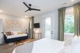 Escape to a Nashville oasis with this chic 2,000+ sq ft haven, just minutes from Broadway’s buzz. This apartment offers the perfect blend of comfort and style, featuring three luxurious bedrooms with ultra-comfy beds, accommodating up to ten guests. With 3.5 baths and a two-car garage, convenience is key. Located near Germantown, Top Golf, and Nissan Stadium, you’re always close to the action. The professionally decorated apartment spans multiple levels, providing ample bedding for large groups and families. It features an amazing balcony for supreme leisure and downtown viewing. The kitchen boasts all new appliances and is stocked with basic cooking supplies, dishes, and a coffee maker. The living room is comfy and modern with a flat-screen TV, making it perfect for your entire group to spend time together during your stay. Dogs are welcome with a limit of two under 50lbs. Dogs must be leashed when outside, and guests must pick up after their dog using the provided dog bag station. Dogs are not allowed on furniture or beds and should not be left unattended. If left alone, dogs need to be crated. Guests should use designated potty areas and ensure their dog doesn't cause excessive noise. This neighborhood is located a short distance from some of the hottest spots in East Nashville. If you are looking to get to know the real Nashville, and you want to do it in style, this is your place. Favorite spots nearby include Five Points, Butcher & Bee, The Pharmacy, Holland House, Barista Parlor, Edley's BBQ, Smith & Lentz Brewery, Southern Grist Brewery, and Mas Tacos. Getting around is easy with options like Lyft, Uber, scooters, walking, city transportation, and taxis. Construction is ongoing next door and around Nashville. The maximum guest count is strictly enforced with no unauthorized additional guests allowed. Exterior cameras monitor property entry, and violation consequences include immediate removal and a $500 fine. No decorations are allowed on walls, paint, or wallpaper. Early or late access requires advance approval, with optional guaranteed early or late access available at 50% of the nightly rate, subject to availability. No on-site luggage storage is available, but alternatives like Luggage Hero and Stow Station are recommended. Guests staying longer than three weeks will incur an additional cleaning fee. Only registered guests are allowed in the building or unit. The primary guest must be 21 years or older, and photo ID information must match the information on the credit card. While staying, ensure all doors are shut and locked when not in use, and do not leave valuables in your vehicle if parked on the street. A detailed digital guest book is provided with tips on how to work the TVs, trash, check-out instructions, and includes favorite spots in Nashville. Registration Number: