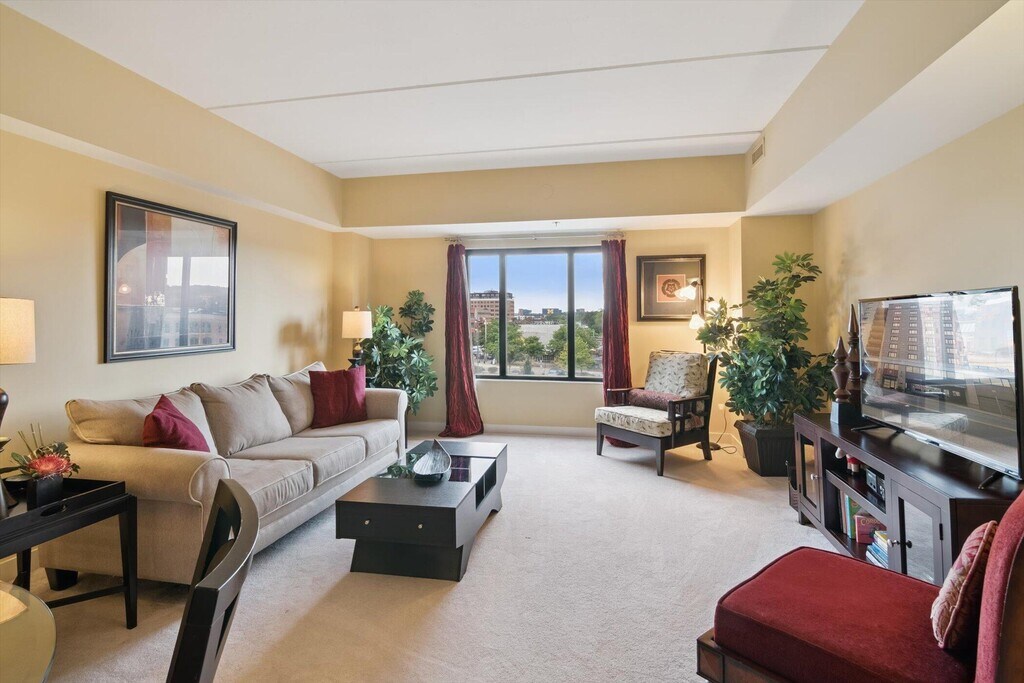 Feel the real pulse of Ann Arbor at Ashley Terrace! This professionally decorated and FULLY FURNISHED condo is just moments away from the best of Main Street restaurants and shops; special events like the Art Fair and Summer Festival; easy access to UM campus and hospital. Be greeted hardwood floors combined with lush carpeting and expansive windows which offer spectacular southern downtown views. The kitchen boasts granite countertops and stainless-steel appliances with a snack bar that overlooks the large dining/living room. Spacious primary bedroom includes large walk-in closet. In-unit laundry closet with washer and dryer,and ensuite bath,complete with step in shower,linen closet,and brightly lit vanity. Heat and water included.