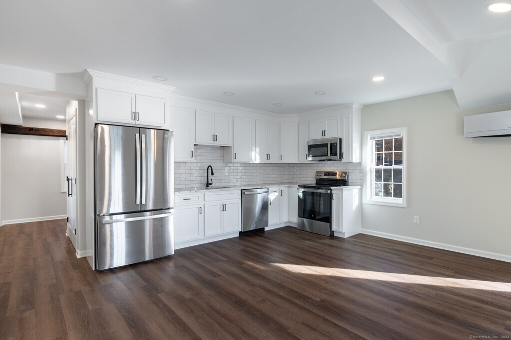 Call for Availability - Enjoy the character of an antique home with all of the modern amenities in this renovated 3 bd/2ba home. Enter your home through the covered porch to find an open and spacious kitchen with quartz counters, tile backsplash, and SS appliances including dishwasher. This is an open layout to the living room and dining nook featuring exposed original wood bringing character into the space. The 1st floor also features a laundry closet for full size side by size washer/dryer, a full bathroom, storage closet, and 1st floor bedroom with ample closet space. On the 2nd level are 2 bedrooms with large closets and another full bath with back-lit mirror with more original exposed beams found throughout. Enjoy amenities such as efficient heating and A/C from the new ductless splits along with high-speed fiber internet. All of this just a stone's throw to the shops and restaurants downtown from your new home. Rent includes: Trash, Sewer, Cold Water, Snow removal, & Lawn care MLS# 24127816