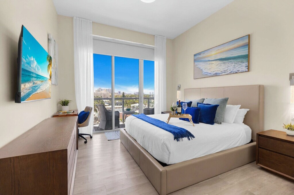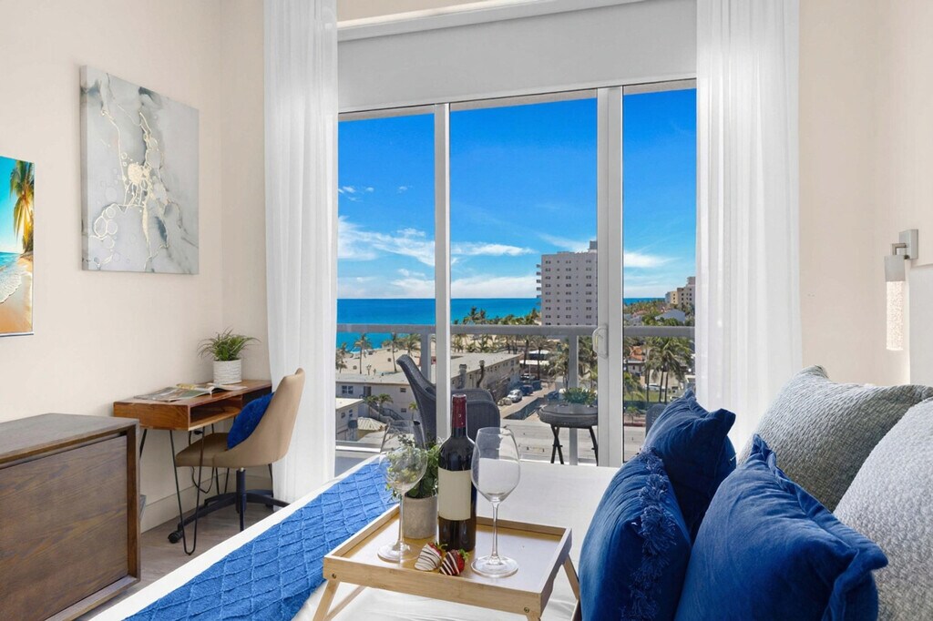 The advertised rate of $4,212/month is the lowest available price, based on a 1 month(s) stay with a move-in date of September 5, 2026. Rates vary depending on the duration of stay, season, and other parameters. For exact pricing and additional pricing components, please visit our website and enter your desired move-in and move-out dates. The rate is applicable when billed upfront; it can be higher if billed in multiple payments. Feel at home in this top-floor stylish apartment with ocean views, steps from the legendary Hollywood Beach Broadwalk. This apartment accommodates up to 6 guests. This brand-new apartment offers all the comforts you need, mixing natural wood and stone with organic textures and state-of-the-art technology. The fully equipped gourmet kitchen features a stainless steel refrigerator/freezer, a glass stove, an integrated oven, a silent dishwasher, an integrated microwave, dishes, a coffee maker, and a toaster. The spacious bedroom includes a hairdryer, an electronic safe, an iron/ironing board, and TVs. The apartment is fully furnished with ceramic floors, electronic door locks, European-style cabinetry, and modern-style designer fixtures and faucets. Enjoy access to the rooftop infinity pool and lounge area with amazing ocean and Intracoastal views. A pack-n-play crib is available upon request. Parking is available at the condo for $42 a day, or you can obtain a public parking pass for the whole month for $110 plus taxes, allowing you to park on any street or city parking lot (300 Connecticut St). Located along North Ocean Drive in the lively community of Hollywood Beach, this apartment puts you at the heart of the action. Within walking distance of the famous Hollywood Beach Broadwalk and the beach, you can enjoy exciting activities such as jet skiing, fishing, sailing, biking, and golf. South Beach and Miami are a short drive away. The Broadwalk, paved with bricks, has bars, restaurants, boutiques, and shops. For a local experience, visit The Le Tub Saloon, GG's Waterfront Grill, El Tayta, and Taverna Opa. A resort fee will be charged at check-in. Swimming is at your own risk; there is no lifeguard on duty. Children must be supervised by an adult at all times. No diving or running is allowed. Keep all doors closed and the air conditioning on at all times to prevent condensation and property damage. The public beach and Broadwalk within the City of Hollywood Beach do not allow pets (service animals are welcome!). [SI]
