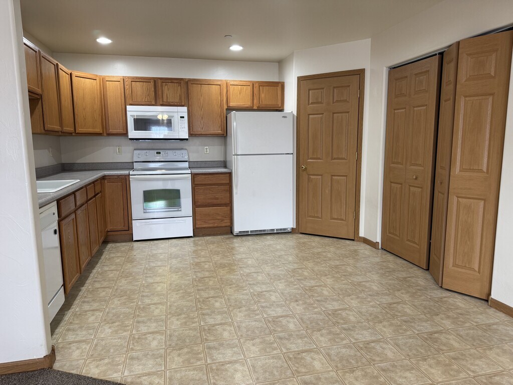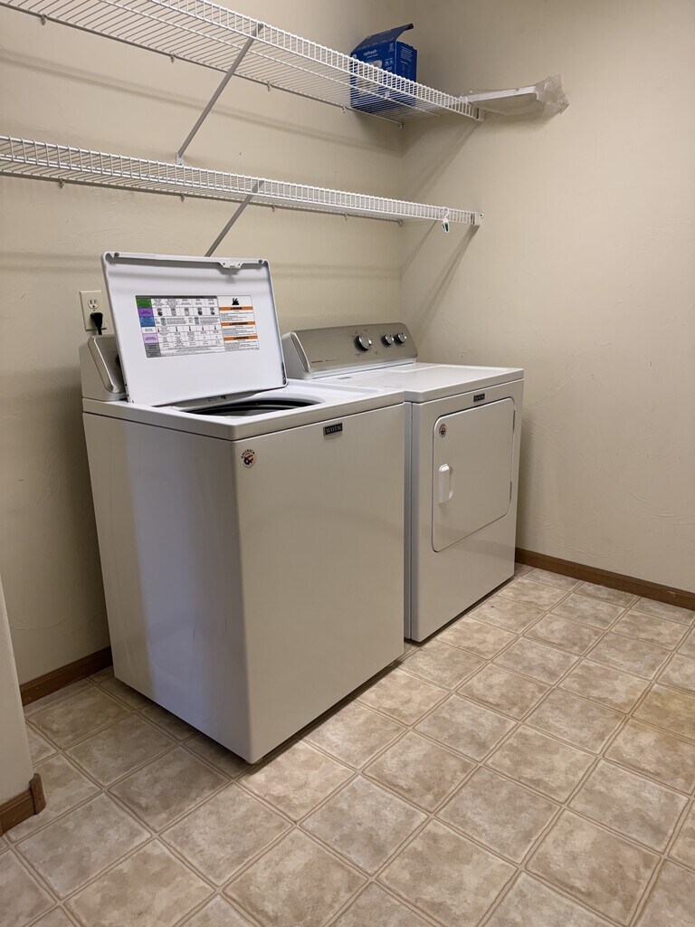 Ground floor condo in River Rock subdivision, right next to the lake and across from the school. Garage included. exterior security doors. Fireplace and large utility room with washer and dryer. Pictures are from multiple units, All lay outs in all units are the same.