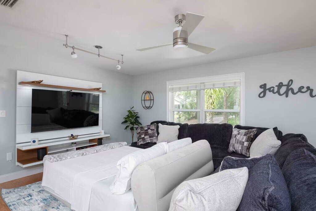 Welcome to your new home in Gainesville, FL! This beautifully renovated 2BED/2BATH home within walking distance to UF Law School, restaurants, shops and amenities is available starting mid-December 2025. offers the perfect blend of comfort and convenience. Located just 2 minutes from the University of Florida Stadium and Campus (15-minute walk), it's ideal for students, faculty, staff, and young professionals. Home boasts double master suites- both bedrooms come with private bathroom and walk in closet. Newly updated kitchen with granite counter tops, stainless steal appliances, and eye catching tile backsplash. Charming dining nook with loads of natural lighting. Bathrooms recently remodeled with vanities and tile showers. Back yard has ample space for parking on game days. What makes this home special: Fully furnished with King and Queen beds (Furniture OPTIONAL) High-speed WiFi perfect for remote work or study Smart TV and entertainment system In-unit washer/dryer for convenience Private screened porch with outdoor TV and seating area Gas grill and corn hole game for entertaining friends and family Perfect outdoor space for relaxation and hosting Unbeatable Location: Walking distance to UF Campus and all university amenities 7 minutes to Shands Hospital, VA Medical Center, and North Florida Hospital Easy access to Gainesville's dining, shopping, and entertainment Quiet residential neighborhood with convenient parking Perfect for: Graduate students and faculty Medical professionals and residents Travel nurses on extended assignments Young professionals working in the area Anyone seeking a comfortable, move-in ready home Enjoy maintenance-free living with professional property management. Lease Duration: 6-month minimum lease required Security Deposit: Equal to one month's rent Application Fee: $75 per adult applicant (non-refundable) Move-in Costs: First month's rent + security deposit due at lease signing Tenant Requirements: Minimum credit score of 650 Monthly income 2.5x the rent amount Employment verification required No prior evictions Utilities: Tenant responsible for electricity, water/sewer, internet, cable Parking: Driveway parking included Pet Policy: Cats and dogs allowed (2 pet maximum) $250 non-refundable pet fee per pet $25/month pet rent per pet Weight limit: 50 lbs for dogs Property Features: Professional property management 24/7 emergency maintenance Online rent payment portal Regular property inspections Lease Terms: No smoking inside property Renter's insurance required No subletting without written approval 60-day notice required for non-renewal Additional Fees: Late fee: $75 after 5-day grace period Returned payment fee: $35