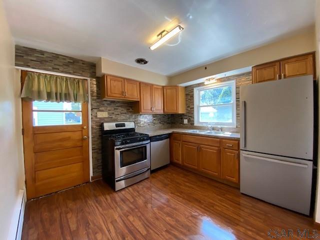 Vinyl-sided rancher with hardwood floored living and dining room, eat-in kitchen with laminate flooring and appliances, 3 bedrooms, 1 full bath, and basement laundry hookups. 3 car garage with 2 openers (shared driveway), deck and porch, attic storage, gas hot water heat. $1350/month rent plus utilities, garbage service. No smoking and No pets. 1 year lease, security deposit, credit & criminal check required. $50 non refundable application fee for any applicant 18 years or older, snow/ice removal and lawn care tenant responsibility, renters insurance. Call to tour!
