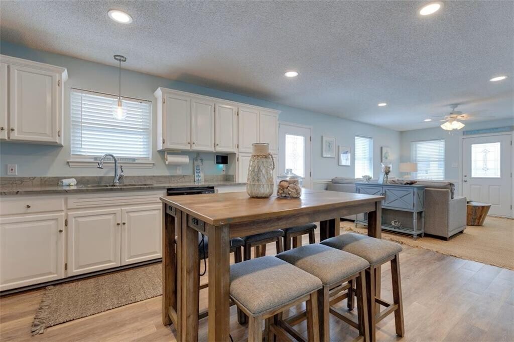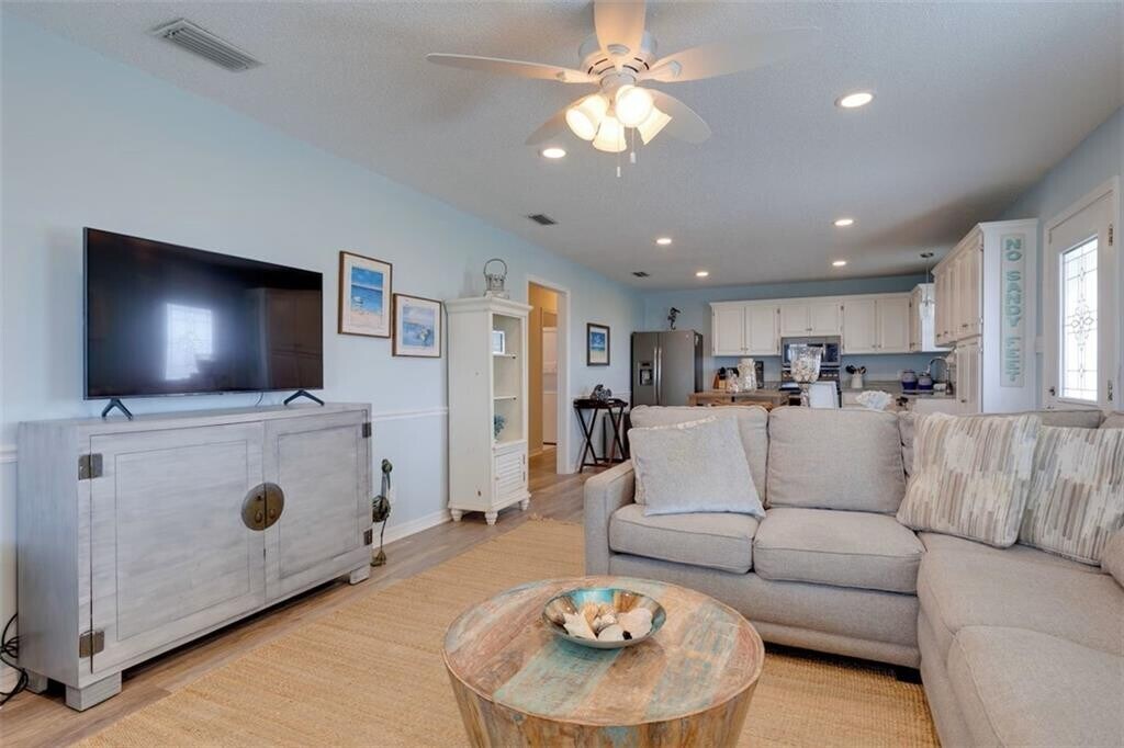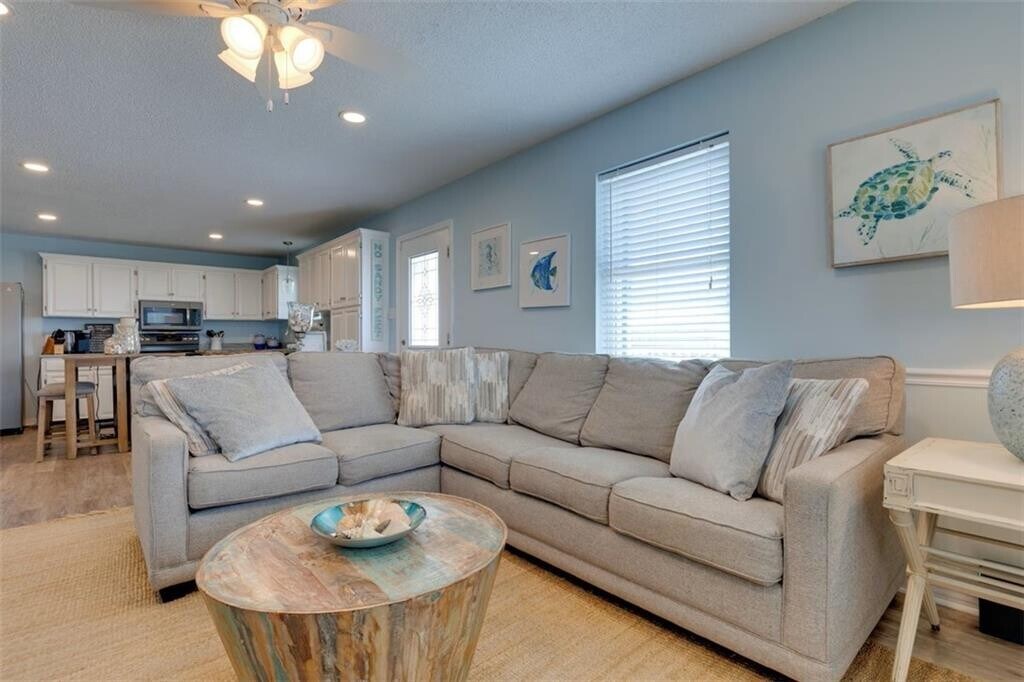 Live the island life in this beautifully furnished beach cottage that perfectly blends comfort,style,and coastal charm. Located just four homes back from the Gulf,you’ll enjoy soothing wave sounds and stunning Gulf views—only steps from the sand! Inside,the open-concept floor plan is designed for relaxation and entertaining,featuring a spacious family room and a fully updated kitchen with GE slate-finished appliances,granite countertops,and a new stainless sink and faucet. Easy-care vinyl flooring flows throughout for carefree coastal living. This home is fully furnished and professionally decorated in a bright,coastal style. The oversized king master suite includes a walk-in closet and spa-inspired bath with a custom marble-top vanity. Two additional queen bedrooms and a full hall bath with washer and dryer provide comfortable space for guests or family. Enjoy outdoor living with a wraparound covered porch offering both sun and shade. The ground level features an abundance of covered entertaining space,a grassy yard,storage area,and grill station with Green Egg—perfect for cookouts and gathering with friends. Situated on a large corner lot,this cottage offers privacy and convenience with easy access to island shops and dining. All furnishings are included—just bring your flip-flops and enjoy your turnkey coastal retreat!