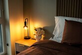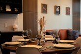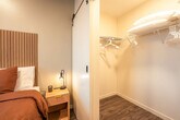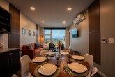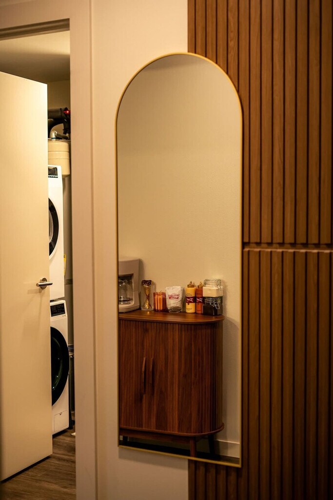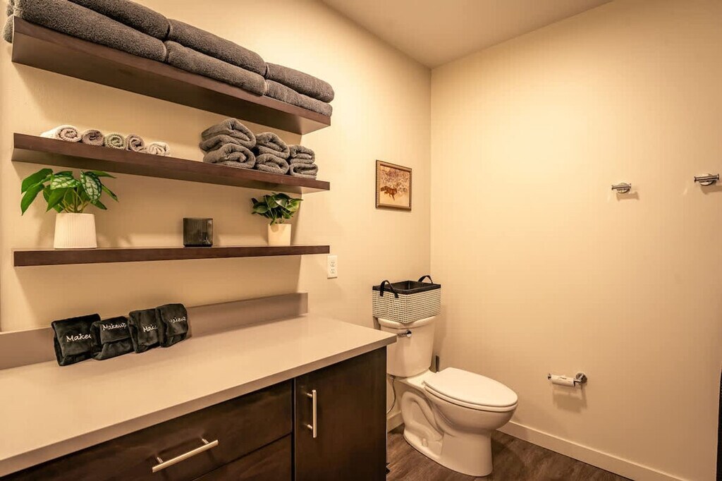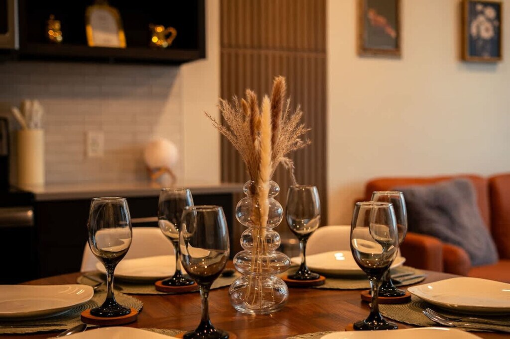Feel right at home in this cozy, modern apartment filled with warm colors and natural light. Large windows offer beautiful views of the city and mountains, creating the perfect spot to relax with a cup of coffee or unwind after a long day. As soon as you walk through the door, you’ll be greeted by a cozy area and a coffee station stocked with coffee, hot chocolate, and tea. The first bedroom features a comfortable queen-size bed surrounded by warm, cozy colors. The master bedroom features a king-size bed dressed in soft, inviting tones and a large window overlooking the balcony and the city. The living area includes a dining table, a fully equipped kitchen, and a record player. Relax on the beautiful orange leather couch, watch TV, or admire the view from the big windows. Step out onto the balcony to take in the city from a whole new perspective. Early check-in or late check-out is available upon request for $30 each, depending on availability, and guests have the option to pay a daily fee of $5 for gated parking. Pets are welcome at an additional fee already included in the price. A $500 fine will be charged for smoking or vaping inside the apartment. Hosting parties or events is strictly prohibited and will incur a $500 fine. Engaging in illegal activities on the premises will result in immediate eviction and a $1,000 fine. Any damage caused to the apartment or its contents will be charged at replacement cost, plus a $300 damage fee. Please respect quiet hours from 8 PM to 7 AM. A $200 replacement fee will be charged for lost or damaged gate remote, and a $50 replacement fee will be charged for lost or damaged parking tag. No excessive mess is permitted, and excessive cleaning fees will depend on the severity of the incident. Hanging items from balconies is prohibited. Includes a dedicated workspace where you can focus while still enjoying the cozy atmosphere. [SI]