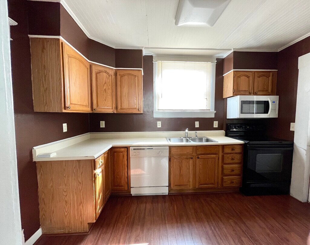 *2 Bedroom,1 Bath Home PLUS Finished Bonus Room in Basement *Hardwood Laminate/Newer Carpet Throughout *Washer/Dryer Hookup *Detached Garage *Front and Rear Porch *Fenced in Back Yard *Central Air Conditioning/Gas Heat *1/2 mile to Shopping/Dining *Built-in Microwave/Dishwasher Included *Pets permitted for additional fee