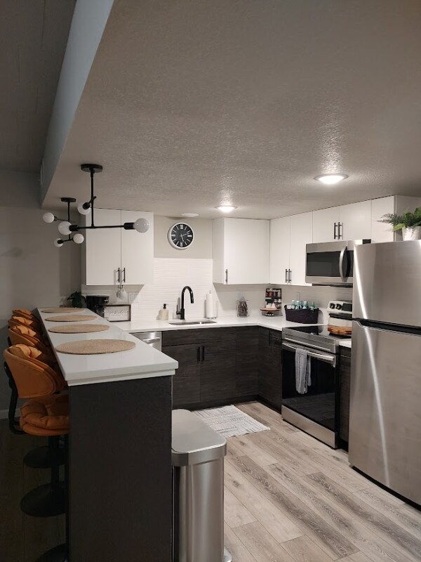 Property Id: 2036648 Step into comfort and style in this beautifully furnished 1-bedroom apartment located right in the heart of Old Town Fort Collins! Recently transformed by professional interior designers, the place features a soothing, cozy color palette that makes it feel like home the moment you walk in. Walking into an open concept layout welcomes you into a bright, inviting living room that flows seamlessly into the kitchen and dining areas - perfect for relaxing, entertaining, or working from home. The stainless-steel appliances, sleek task lighting, and a breakfast bar/island set the stage for both casual meals and entertaining friends in the open-concept living, dining, and kitchen area. A hallway nook offers a built-in workspace and extra storage in the utility closet—ideal for remote work and keeping gear organized. Spacious bedroom with an adjustable Queen bed, dual closets, and storage. Private parking included. see video: