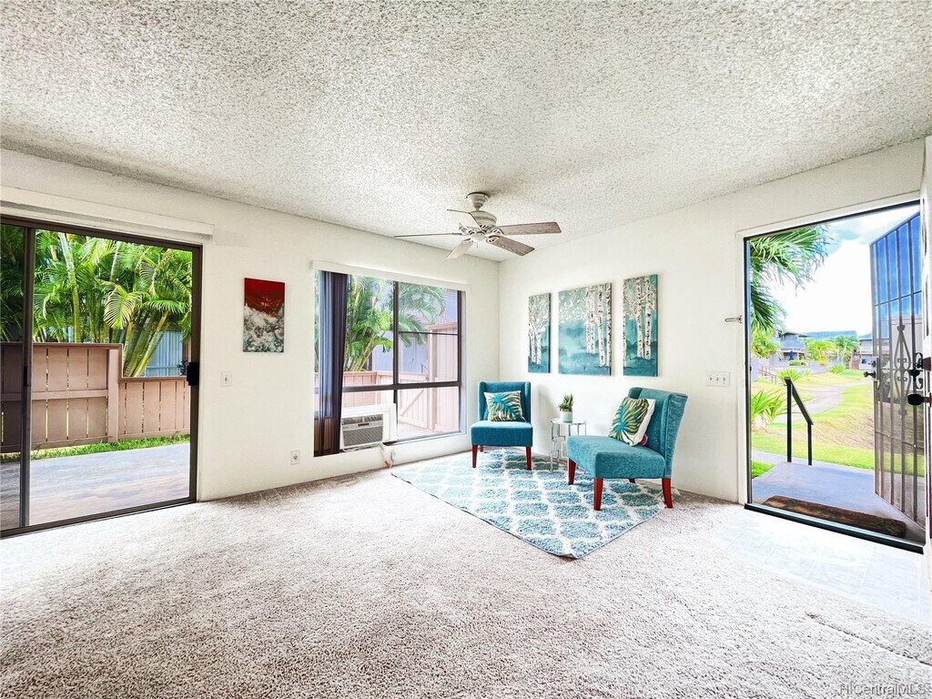 Ground floor condo unit with a desirable open floor plan and one of the largest private outdoor spaces / lanais in the community, perfect for indoor-outdoor living. Features new stainless steel kitchen appliances including a gas stove, french door fridge, dishwasher, and in-unit washer and dryer, hardwood living/dining room, carpeted bedrooms, as well as two reserved parking stalls (one covered parking + one uncovered). Located in a quiet, pet-friendly community close to shopping, dining, parks, schools, and freeway access. Tenant will have access to all community amenities including a pool and recreation area. Pet-friendly with no weight or breed restrictions (subject to additional documentation and approval). No additional pet fees required! Water, sewer, and community amenities are included. Tenant responsible for electricity, cable, and gas. Rent is $2,800/month. Security deposit of $2,800 due at signing of rental agreement. Renters insurance is required. Property will be available for move-in on Saturday, February 14, 2026. Initial lease duration is 12 months. May convert to a month-to-month agreement after completion of the initial lease. This unit is currently OCCUPIED. Due to tenant privacy, listing photos are of the unit prior to occupancy and does not reflect the recent interior updates stated above. Showings are by APPOINTMENT ONLY.