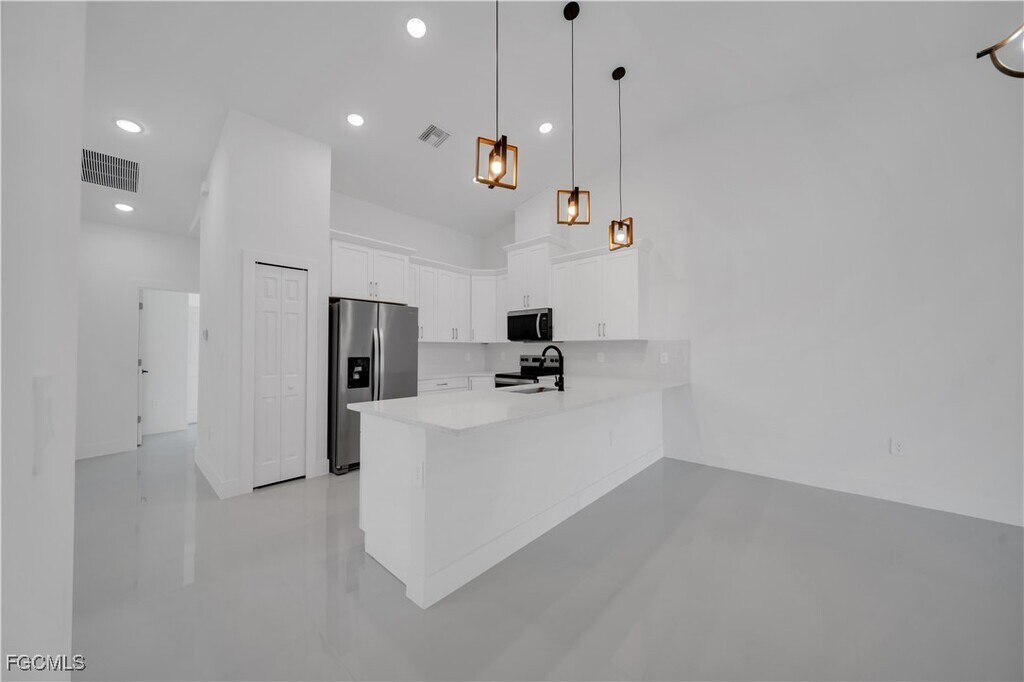 FOR RENT – Beautiful 3-Bedroom,2-Bath Duplex Unit with 1-Car Garage Near SR-82 and Fort Myers! This stunning and modern duplex unit offers 3 spacious bedrooms,2 full bathrooms,elegant tile flooring throughout,impact windows,and a private entrance. The bright open layout provides abundant natural light and includes a comfortable screened lanai perfect for outdoor relaxation. The upgraded kitchen comes fully equipped with stainless-steel appliances and offers a stylish,functional layout ideal for everyday living. Additional features include ceiling fans in all rooms,an electric garage door,and an epoxy-finished garage for a clean,polished look. Conveniently located near SR-82 with quick access to Fort Myers,shopping,dining,and major roads. Photos shown include both units,and the unit at 1112 Eisenhower is also available for rent. Perfect for long-term tenants seeking comfort,quality,and an excellent location.