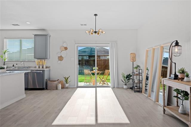 READY NOW!! BEAUTIFUL HOME with GREAT DESIGN and color choices! EXCELLENT LIGHTING IN THIS HOME! Large open floor plan and split bedrooms. FRESH PAINT throughout! UPDATED Kitchen with NEW DISHWASHER and NEW STOVE, NEW FLOORING throughout entire home... Beautiful Epoxy garage flooring and finished out garage, fresh landscaping! Large backyard has lots of room for entertaining with new patio. WONDERFUL MODERN LIGHTING THROUGHOUT THE HOME AND MODERN FRONT DOOR. There is plenty of storage space in this home with the large laundry room and bedroom closets. Beautiful Barn Door and spacious master bathroom. Large dining area connected to kitchen and living room. Just minutes from schools and parks. Van Alstyne has received 4.5 stars in school districts since 2016. Full EPOXY finished out Garage. WELCOME HOME!