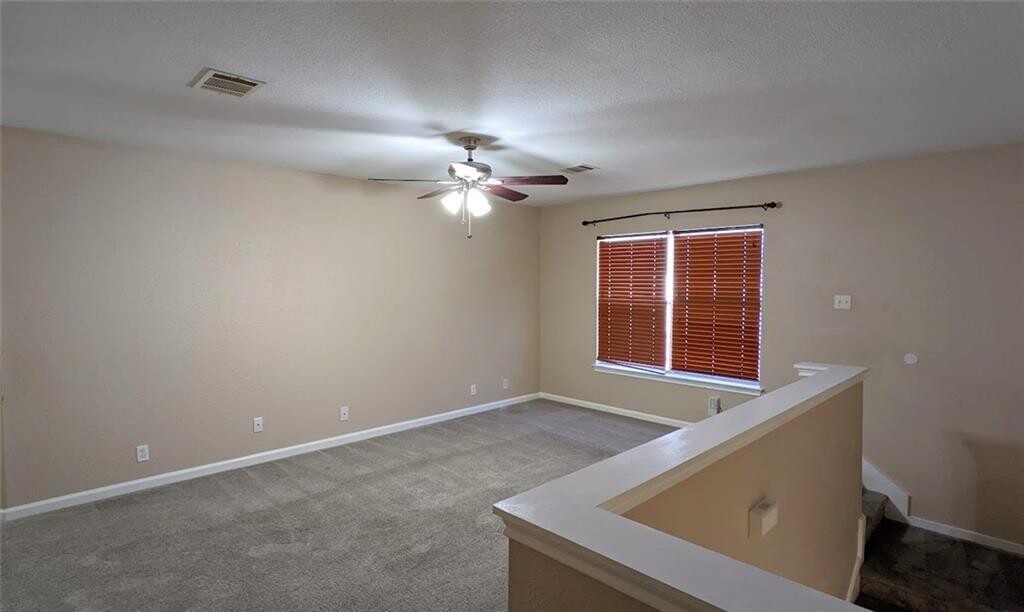 Available 2/1/26. Welcome home to this inviting two-story traditional residence in the desirable Trails at Carriage Hills neighborhood. Featuring charming stone siding and a covered front porch, this home offers both curb appeal and comfort from the moment you arrive. Inside, you’re welcomed by a formal living space with soft carpet, ideal for a sitting room or home office. The main living area features durable tile flooring and flows seamlessly into the breakfast dining area and spacious kitchen—perfect for everyday living and entertaining. The kitchen is filled with natural light from backyard, tree-shaded windows and offers a center island for hosting, ample counter space, and an impressively sized walk-in pantry. The oversized primary suite is thoughtfully designed with wood flooring, a ceiling fan, and a private en suite bathroom complete with a tiled walk-in shower. Generously sized secondary bedrooms provide flexibility for family, guests, or work-from-home needs. Upstairs, a large bonus room serves as a third living space—ideal for a game room, media room, or play area. Step outside to enjoy a relaxing backyard retreat with mature trees that provide shade and privacy, along with an oversized covered back patio perfect for outdoor dining or unwinding after a long day. Located just around the corner from the community park with a playscape and sport courts, and minutes from dining, shopping, and major employers, this home offers an excellent lifestyle in Cedar Park.