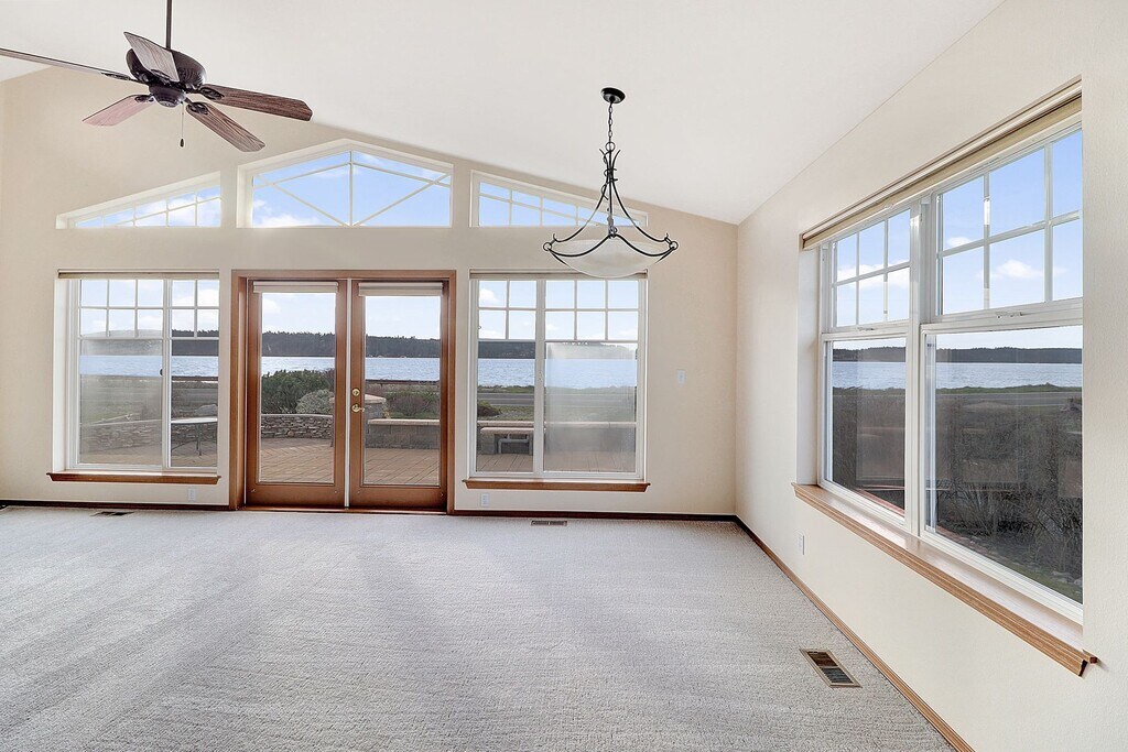 Oak Harbor Property Management See (1). for IMPORTANT Schedule Showing instructions. Enjoy endless Penn Cove views from this one story 2 bedroom 2 bathroom home with large office. Open concept living room features propane fireplace with mantle and french doors leading to breathtaking patio views. Living and dining rooms adjoin oversized kitchen ideal for cooking enthusiasts complete with eat in bar and walk-in pantry. Primary bedroom with five piece en suite bathroom highlights walk-in shower, jetted soaking tub, and dual vanities. Large laundry/mudroom with ample storage. Washer, dryer, and microwave included but not maintained. 192sf lighted attic storage. Two car garage. Monroe Landing boat launch nearby. 500ft private community beach. Landscaping included with monthly rent. Ideal Pacific Northwest recreational access and close proximity to NAS Whidbey. (1). Schedule showing(s) and apply online at rentoakharbor[dot]com/availability. For Property NOT AVAILABLE NOW, one Tenant must apply. For Property AVAILABLE NOW, prescreening is required. Showing requirements do not guarantee availability. (2). Security deposit listed (minimum amount and subject to change) includes nonrefundable administrative fee. Each applicant requires PetScreening profile regardless of pet(s) and/or animal(s) (emotional support, service, etc.) completed via rentoakharbor[dot]petscreening[dot]com. Applicant(s) responsibility to confirm cell phone, internet, cable, etc. availability.