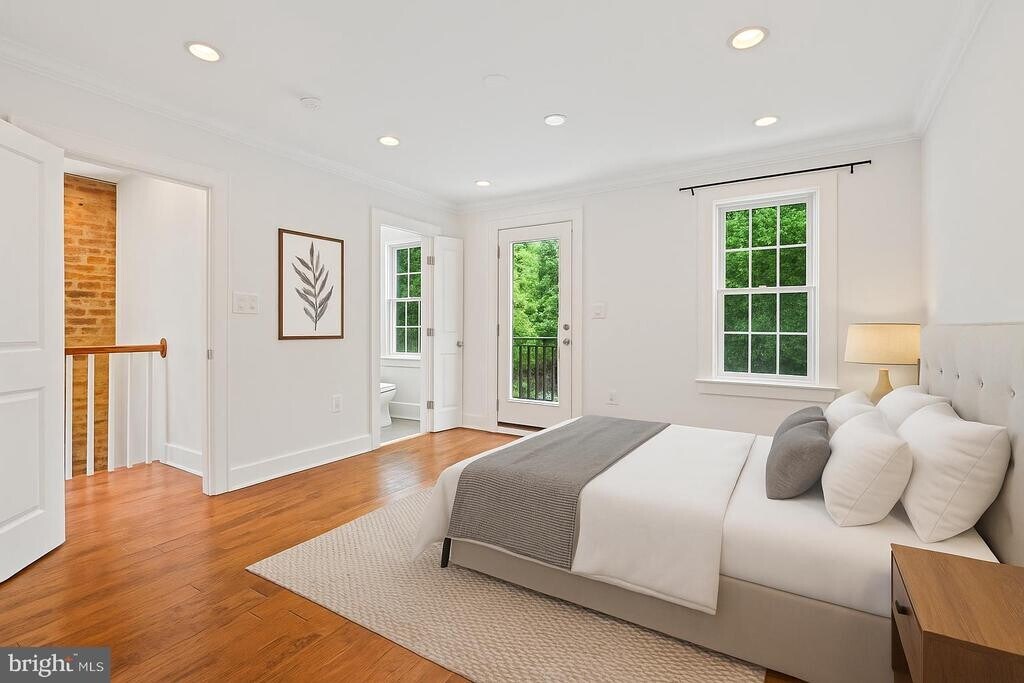 0.7 mi to Union Market • Near H Street Corridor & Gallaudet University • Fenced front and rear yards with off-street parking pad Experience bright three-level living in this modernized Trinidad row home blending classic brick architecture with contemporary updates and a flexible layout ideal for today’s lifestyles. The main level features an open-concept living and dining area with hardwood floors, recessed lighting, and exposed brick accents. A powder room and a spacious kitchen with white shaker cabinetry, granite countertops, stainless-steel appliances, gas range, and peninsula seating flow directly to a rear deck and fenced patio for outdoor entertaining or relaxation. Upstairs, the primary suite includes a private balcony and an en suite bath with dual vanity and glass shower. Two additional bedrooms, a full hall bath, and a convenient laundry area complete the upper level. Skylights bring natural light throughout the hall and bathroom areas. The fully finished lower level offers a recreation room plus a fourth bedroom and full bath—perfect for guest quarters, home office, or gym setup. Smart-home features include a programmable thermostat and modern HVAC system. Front and rear yards are fenced for privacy, and the rear parking pad adds valuable off-street convenience. Situated in the heart of Trinidad near the H Street Arts District and Union Market, this home offers easy access to cafés, restaurants, groceries, and entertainment venues. Commuters enjoy quick connectivity to Downtown DC, NoMa-Gallaudet Metro (less than 1 mile), and major routes including New York Avenue NE and Florida Avenue NE. Nearby green spaces include the National Arboretum and Trinidad Recreation Center. Virtually staged photos showcase furnishing options and highlight the home’s spacious layout and flow. The listing includes a detailed floor plan for reference. A rare opportunity to lease a well-appointed four-bedroom home with flexible living space and off-street parking in one of Northeast DC’s most connected neighborhoods.