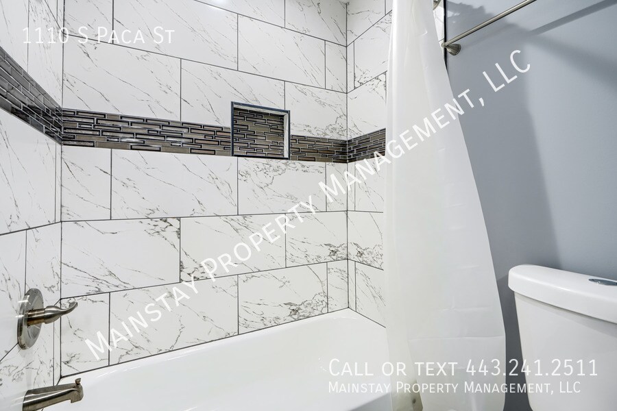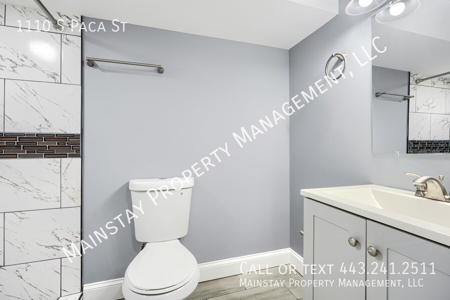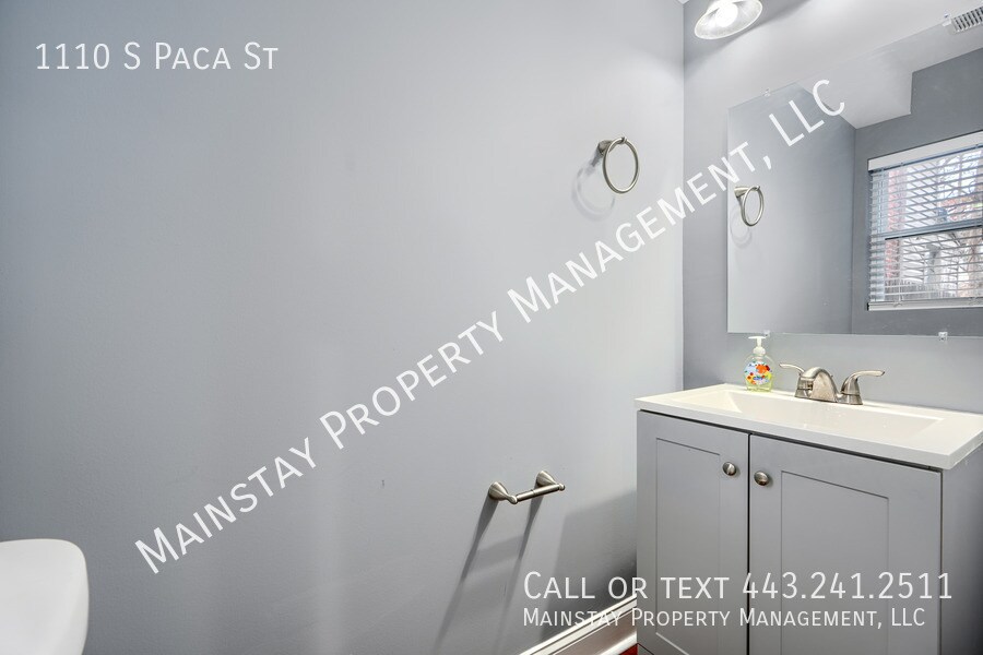 Available immediately! Welcome to 1110 S Paca St, a fully updated 2 bedroom rowhome in Pigtown. The main level features beautiful dark hardwood floors and includes a living room, a convenient half bath, and a stunning updated kitchen complete with a full suite of stainless steel appliances, quartz countertops, and tile backsplash. From the kitchen, you’ll have direct access to the private, fenced-in backyard—perfect for relaxing or entertaining. Upstairs, the spacious primary bedroom offers its own en-suite bathroom and direct access to a private back deck. The secondary bedroom also features an en-suite bathroom. The finished basement includes a bonus room ideal for a home gym, office, or additional recreation space, along with a beautifully updated full bathroom. A separate utility room includes a washer and dryer for added convenience. Completing the property is a spacious rear parking pad. Conveniently located just minutes from downtown Baltimore, Camden Yards, and major highways. Schedule your showing today!