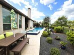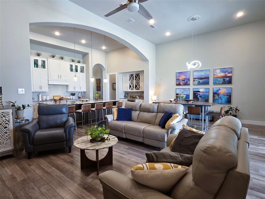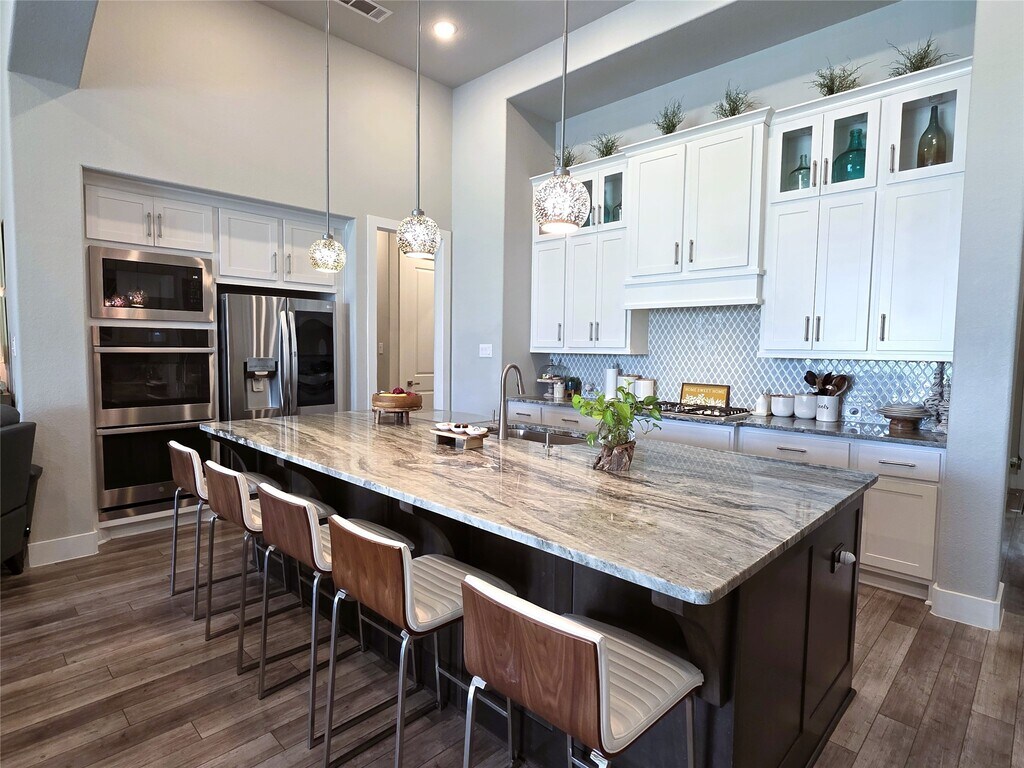 One-of-a-kind home nestled in the highly desired Harvest Green community,perfectly positioned on the 75' waterfront lot and just a short walk to the playground,tennis courts,and volleyball court. The home offers 5 bedrooms and 4.5 bathrooms,with four bedrooms—including a luxurious primary suite with a spa-like bath—plus a dedicated office all on the main level. Upstairs,you’ll find a game room and a second guest suite,ideal for visitors or multigenerational living. The kitchen features a massive island,gas cooktop,wine fridge/coffee bar,and an open layout that flows seamlessly into the family and dining areas. The 4-car garage includes 2 charging stations,separate storage,and 8' doors. You’ll fall in love with the custom his-and-her primary closets and wake up each morning to serene lake views. Step outside to your private oasis with a heated pool and jacuzzi,perfect for year-round enjoyment. The backyard also features fruit trees and a covered patio with a gas fireplace. MLS# 80494782