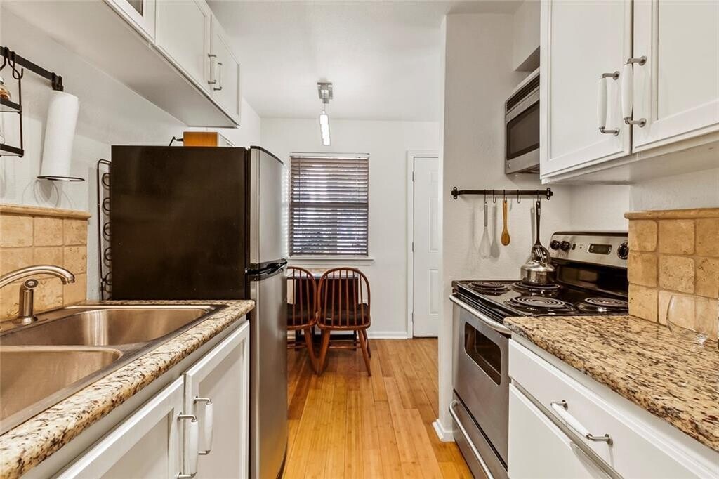 PRE-LEASING FOR AUGUST 2026! This unique and quiet community is a short walk to the UT Campus and The Drag/Guadalupe. The condo has a private yard and covered outdoor patio area that's extremely rare on condos and very nice. The West Campus Cottages were renovated extensively a few years back and feature granite counters, wood and tile floors, bright windows, this is a well cared for property in a great location. Washer Dryer included. Comes with 1 reserved parking space.