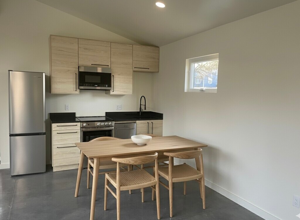 This is a charming stand-alone 1 bedroom home with covered porch and a yard. You will be the first one to live in this brand new house. There are pocket doors in the bedroom and the bathroom to separate or to open up space. The vaulted ceilings and windows fills the house with natural daylight. This home is a short walk to coffee shops and restaurants right here in the center of town. At the same time it is also walking distance to a Brooks-Hummel Nature Preserve and Lake Lucille. This is a modern efficient house set up with EV charging station & energy efficient appliances. It is located close to the trail system and an easy bike or walk to most of the amenities of Fayetteville. *AI was used to show how the unit could be furnished. It is not a furnished house. No Application Fee Please text Mary Thompson at to learn more.