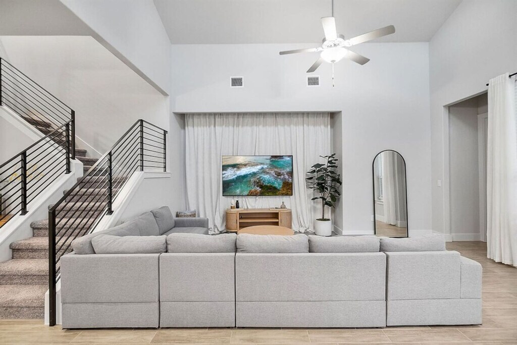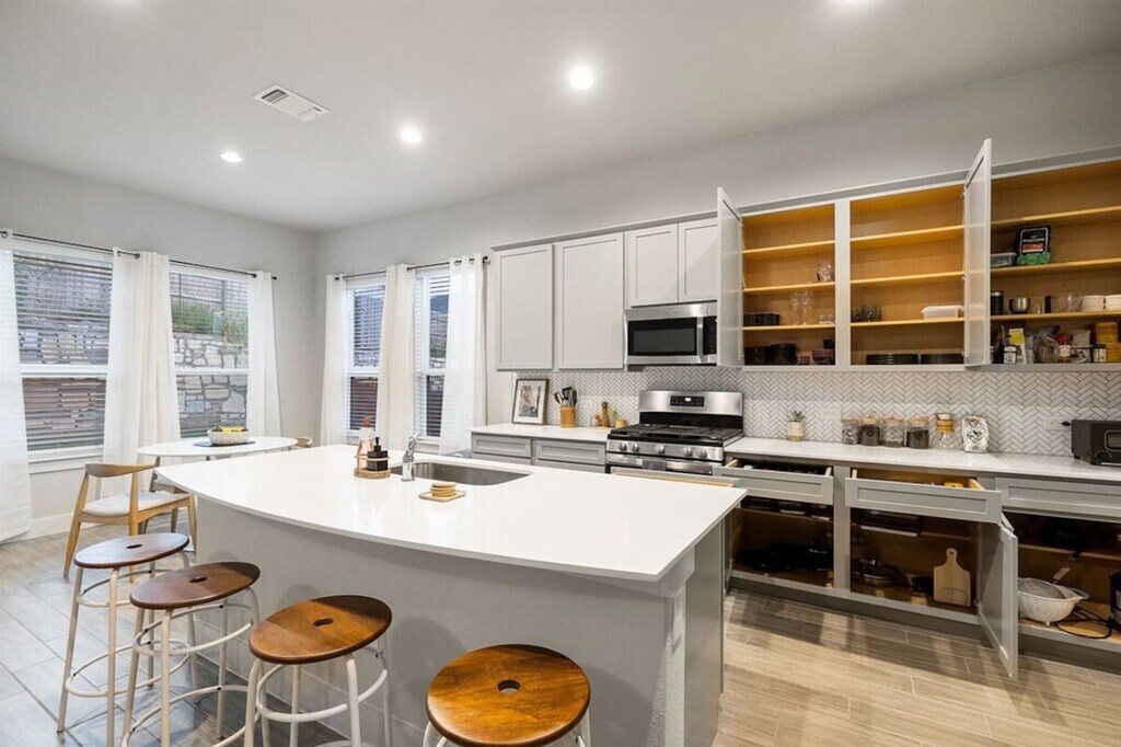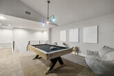 Feel at home in this inviting 4-bedroom, 3-bathroom gem in Austin. Renovated with modern finishes and high-tech lighting, this space ensures a carefree stay. The kitchen is fully equipped with modern appliances including a microwave, oven, and dishwasher, as well as coffee essentials and a premium toaster. The bathrooms are private and stocked with essential toiletries and hairdryers. Enjoy entertainment on a massive 75" smart TV and new recreational amenities including a modern billiards table. Luxurious bedding includes premium mattresses, pillows, linens, and sheets. The apartment also features smart locks, security systems, motion detectors, and smart thermostats for convenience and safety, as well as high-performance kitchen appliances including a sleek Samsung refrigerator and modern LG washer and dryers and premium stainless-steel cooking appliances from GE. An air mattress can be provided upon request. Pets must be disclosed and approved in advance, and no pets over 50 lbs are allowed. There is an extra one-time fee per pet per stay: 1-2 nights: $100/pet, 3-6 nights: $150/pet, 7-29 nights: $250/pet, 30+ nights: $300/month/pet. The residence offers a secluded yet central position, ideal for attending significant business gatherings or cultural events in Austin's vibrant downtown area. The apartment is strategically located near Hwy 130 and Palmer Ln, providing effortless routes to Downtown Austin and the Domain. The location offers convenient access to various Austin destinations, a prime location near major business and entertainment hubs, quick commute times to downtown and popular shopping areas, proximity to the local airport and notable industrial facilities, a serene residential setting in northeast Austin/Manor, and a secure environment within a peaceful neighborhood. Ample on-site parking is complimentary. Smoking, drug, and vape use is not allowed inside the unit, on the balcony, or in the hallways of the building, and there is a $1000 fine if discovered or reported. Strictly observe quiet hours from 10pm to 8am. Parties are not allowed in this property, including loud music, and there is a fee of $1000 if a party is discovered or if a neighbor complains of excessive noise. If an excessive mess is discovered after your stay, you will be charged accordingly on top of the standard cleaning fee, and you will be charged for stained or damaged sheets/towels. There is a $600 penalty for lost keys/clicker/fob. Do not alter any safety device. There is one security camera pointing at the door entrance, and blocking or disconnecting this device will lead to immediate termination of your stay with no refund. $600 penalty for lost or damaged key/ fob / parking permit. $500 penalty if you’re locked out and will need us to send someone to assist you. All stays longer than 29 days must be cleaned by our housekeeping team, and this service will cost $150, which must be paid for by the guest. All guests are required to sign a rental agreement before receiving check-in instructions. Late check-out is subject to approval and must be notified in advance. Standard check-out time is 10:00 AM. Late check-out at 11:00 AM costs $20.00. At 12:00 PM it costs $40.00. Any guest checking out beyond 12:00 PM is subjected to a penalty of $300.00 and immediate expulsion. Includes a 75" 4k Sony TV, dual monitors, electric standing desks, and high-speed internet. Garage gym access with essential equipment is also available. [SI]