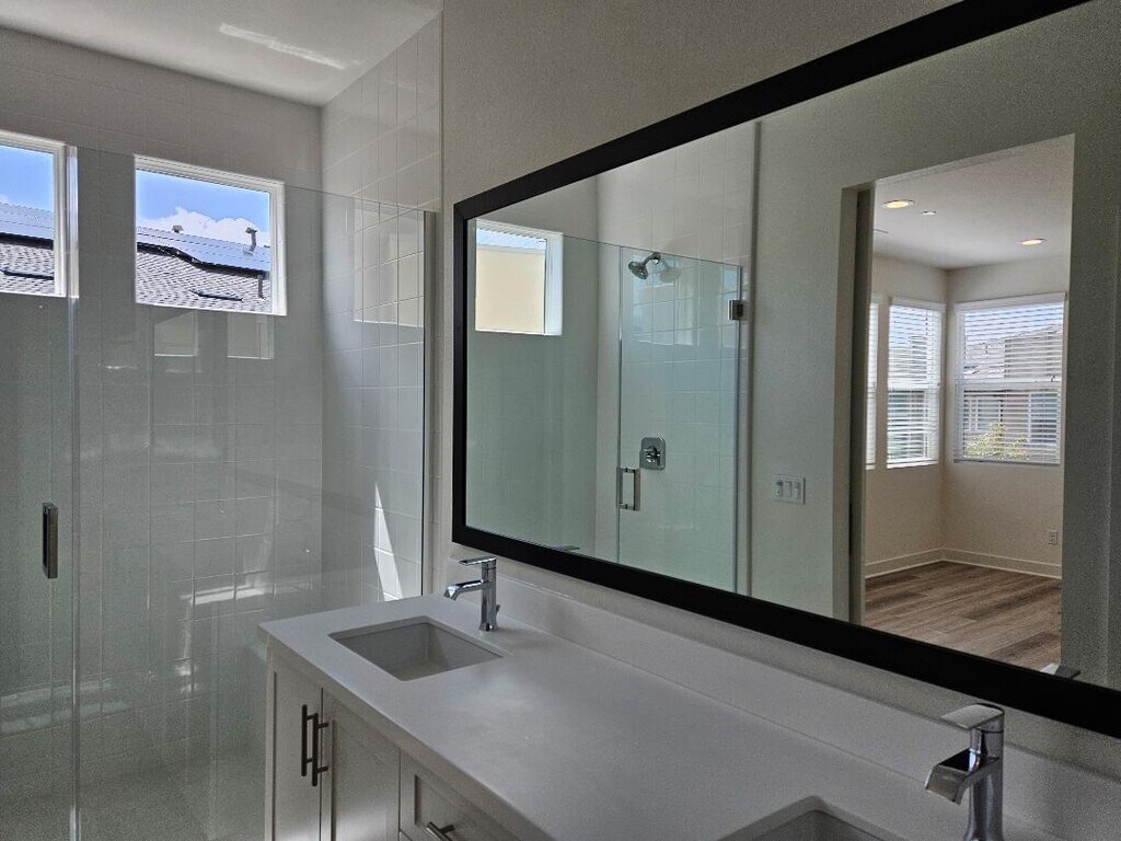 The property is located in beautiful 3 roots community near by Camino Santa Fe. The home is facing to south-east with enough brightness from Sun. Absolutely gorgeous brand new luxury townhome for Rent in the master-planned 3 Roots Community.(Sorrento Mesa) House Info: 3BD/2.5 BATH, 1Loft, 2 Car Garage, Brand New 2-story Townhome - Corner Unit with lots of window, small fenced-yard, Not furnished. The home is bright and in the quiet location. Rent - $4800 Available now. More info about home: First Floor: Spacious Living and dining area are part of one great room. Kitchen featuring center island with Brand new Cabinets and appliances. 2nd Floor: One master bedroom with master bathroom and Large walk-in-closet, 2 Bedrooms with full bath, Laundry room with Brand new Washer/Dryer and Small Office Area (Loft) with built-in desk. Brand new Solar Panels in the unit the electric bill including up to 3.5 kW. Access to several amenities, including a clubhouse with a luxury fitness center (photo attached), swimming pool, parks and walking trails. Great location mile away from freeway 805, 5, 15 and also Near from UTC shopping Center. Looking for tenants with excellent credit and residential history. Will be asked to apply through Zillow as part of the screening process. If you are inquiring about the place for showings, share a few things about you and your family. Renter is responsible for water and electric (will be lowered by Solar energy) and gas and sewer. No pets. No smoking allowed. Recommend to take a tour before you submit the application (must see).