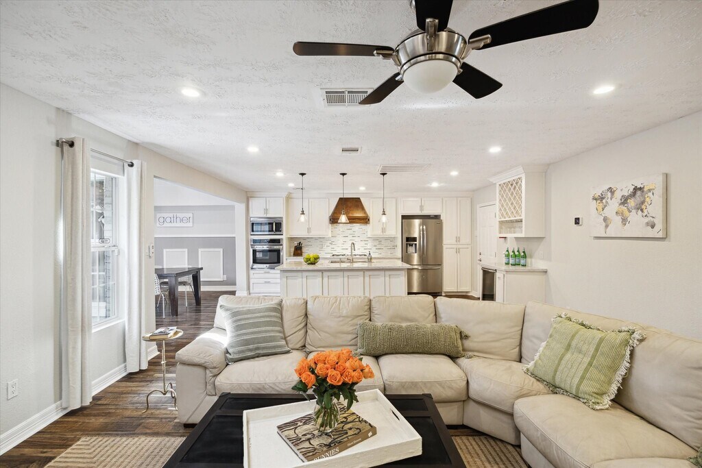 Beautifully updated 4 bed,2 bath home zoned to desirable Parker Elementary (Tenant to verify eligibility and attendance) at a fabulous price. This spacious,open-concept floor plan is perfect for everyday living and entertaining. The chef-inspired kitchen features marble countertops,an oversized island,European-style cabinetry and stainless-steel appliances all open to large living and dining. The primary suite offers a spa-like retreat complete with a stand alone soaking tub,dual sinks,and quartz countertops. The secondary bathroom is equally stunning,featuring quartz countertops. The large backyard,perfect for outdoor gatherings,gardening or unwinding,features a generous patio with pergola and play set. Updates incl HVAC (2023) water heater (2024) new carpet in bedrooms (2025). Conveniently located just minutes from Meyerland Plaza,Med Center and 610 Loop. Also for lease fully furnished at $3450/month. All per Seller MLS# 68147811