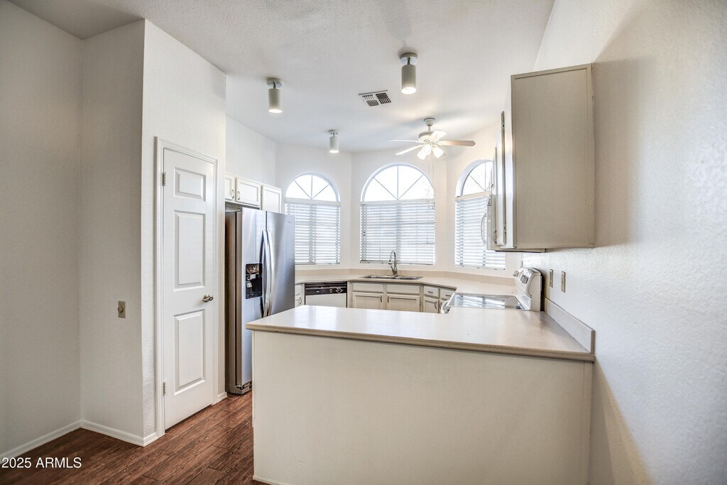 Beautifully refreshed 3 bed/2 bath Scottsdale single-level home! Recently painted inside and out,this light and bright residence features brand-new blinds,ceiling fans and no carpet. Vaulted living room. The open layout offers comfortable living and dining spaces,a functional kitchen,and 2 car garage. Washer/dryer included. Enjoy a low-maintenance yard and community pool. A fantastic location close to shopping,dining,parks,and top Scottsdale amenities. Move-in ready and waiting for you!
