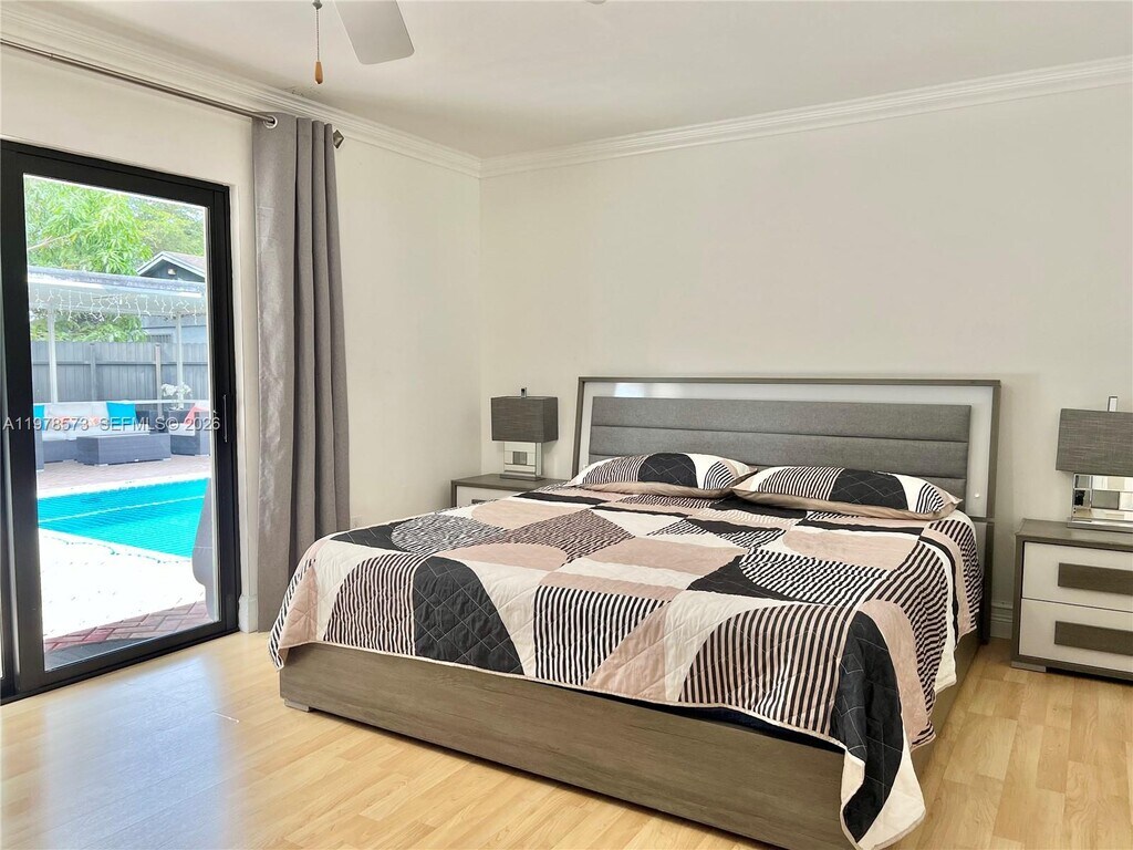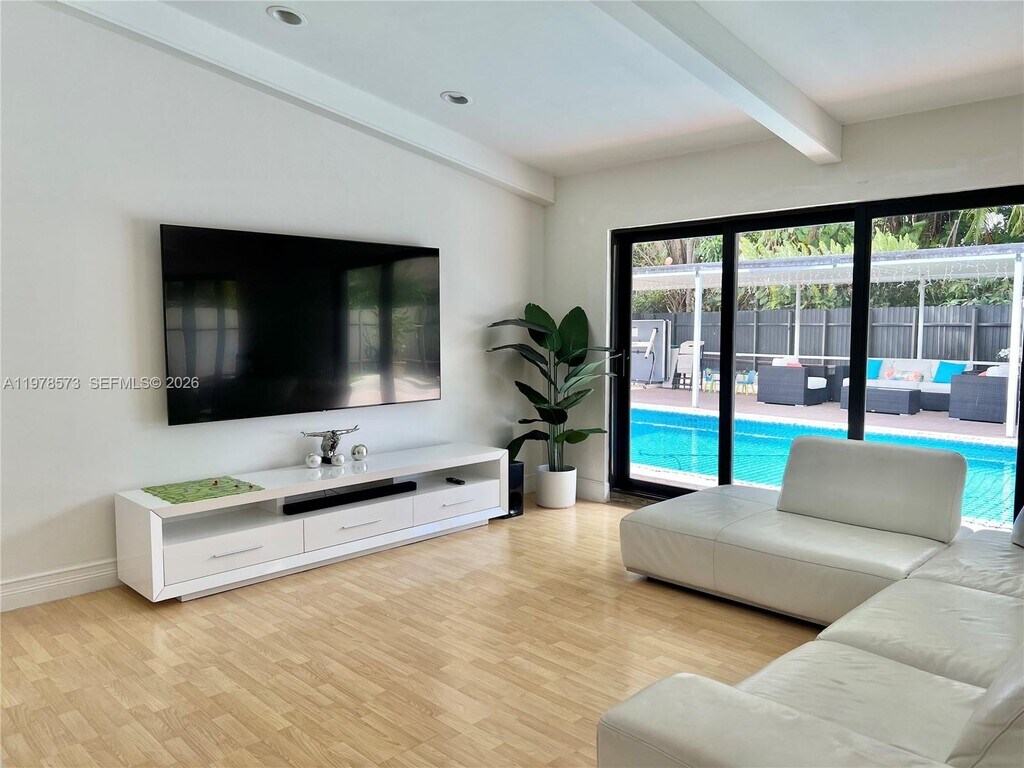 Beautiful single family home, 4 bedrooms and 2 bathrooms, a large pool with water heater, a covered terrace and a 2 car garage with a spacious circular driveway and ample space for 6 or more cars, concrete and metal fenced all around the house. Move-in ready, very spacious property with vaulted ceilings and large spacious kitchen and family room, living room and dining room in open concept. The kitchen features wood cabinets to the ceiling with granite countertop & stainless steel new appliances. It features tankless water heater. Plenty of space backyard to enjoy around the pool with family or entertain. The tiled roof was installed in 2022 with modern and heavy brown impact windows and doors hotel style that gives the property a modern touch. The air conditioner was replaced in 2022. MLS # A11978573