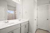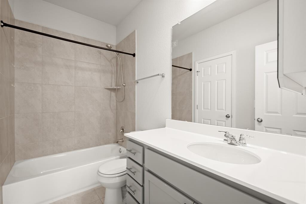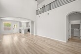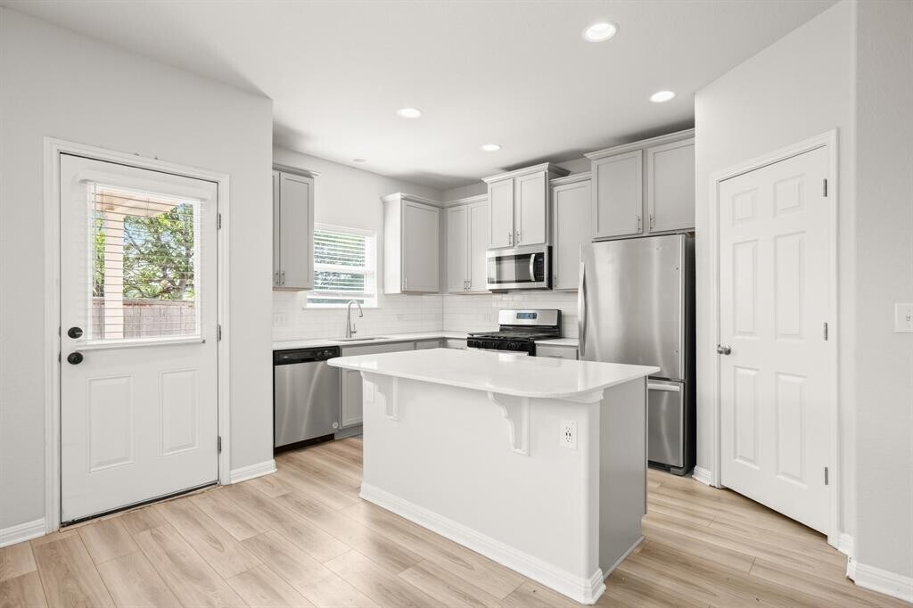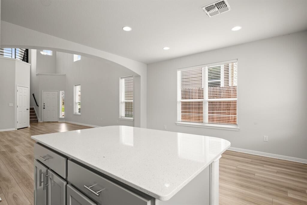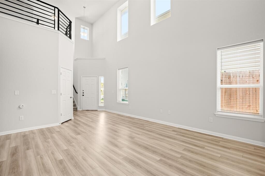 Beautiful 4 bedroom, 3.5 bath home in South Austin's Vistas. The spacious 2,273 square feet includes a second living area upstairs with a closet, plus the home has front and back porches and a backyard overlooking green space. Wood-look flooring and vaulted ceilings highlight the main living area, along with a modern staircase railing and arched walls for added style. The kitchen features a large island with a seating area plus a roomy pantry. The primary bedroom is oversized, and the en suite includes double vanities and a walk-in closet. Enjoy the neighborhood pool and playground! Recent interior paint.