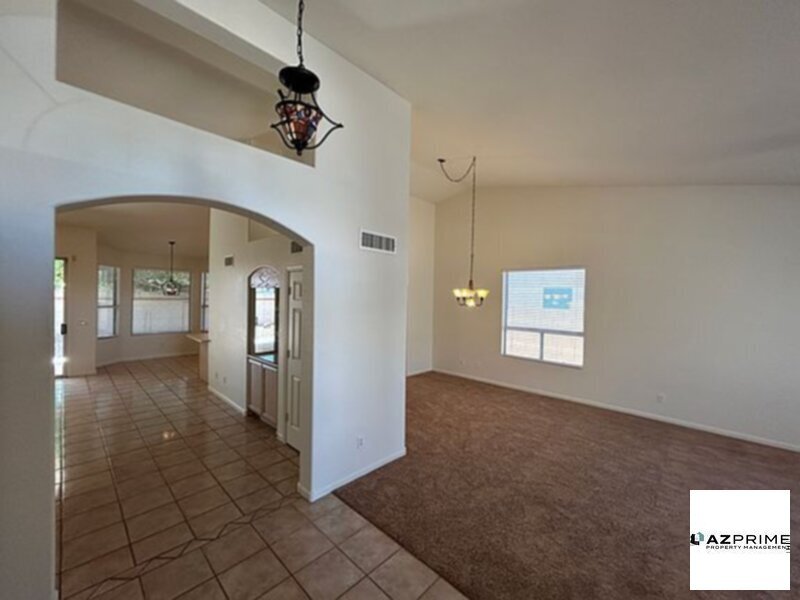 Garden Lakes - Close to schools, shopping and Freeway access. Eat in kitchen that opens to large family room with fireplace, all tile. 4 bedrooms and 2 baths. Master bedroom has sitting area, large walk in closet, and bathroom with separate garden tub, shower, and dual vanities . Spacious oversized additional bedrooms. Single level. 3 Car Garage, Oversized Lot, Covered Patio, Brand New Carpet, Brand New 2" Blinds throughout. New completely painted interior. High, Vaulted Ceilings throughout, including bedrooms and main areas. Cross Streets: Indian School/111th Ave Directions: South on 111th Avenue, Right on Garden Lakes Pkwy, Right on 111th Lane