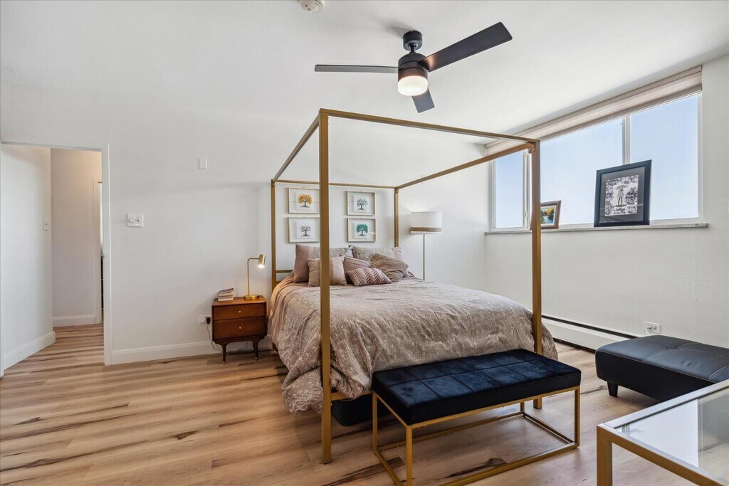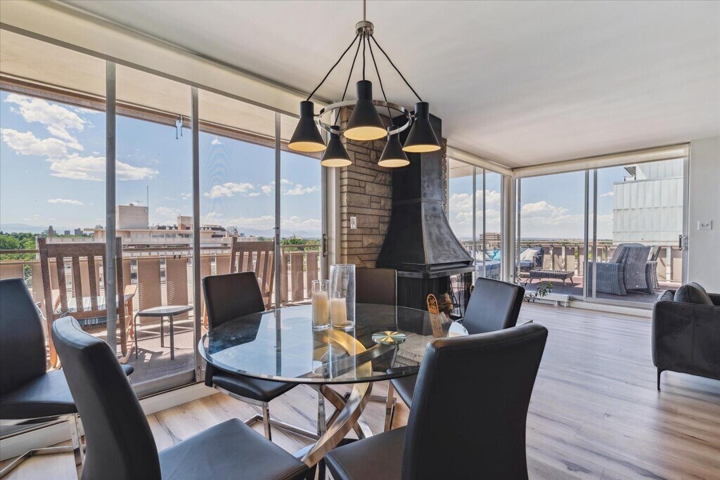 Spectacular mountain and city views from this beautifully remodeled penthouse furnished condo with a spacious private wraparound deck ! This is a rare opportunity to lease a top-floor that truly has it all. Enjoy incredible views of Longs Peak, Mount Evans, and the downtown skyline—perfect for indoor/outdoor living and entertaining. The bright and open living and dining areas are filled with natural light thanks to expansive windows. The primary bedroom offers comfort and convenience with a walk-in closet, A/C unit, ceiling fan and en-suite bath. The guest bedroom includes a full-wall closet, A/C unit, and ceiling fan as well. Additional features include secure underground garage parking and access to swimming pool. Located in a prime area near restaurants, Trader Joe’s, and with easy access to downtown. Cadillac Condominiums Entertainment • Diversity • Outdoor Recreation • Urban Vibes • Emerging Neighborhood • Excellent SchoolsJust three miles from downtown Denver, the Hale...