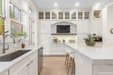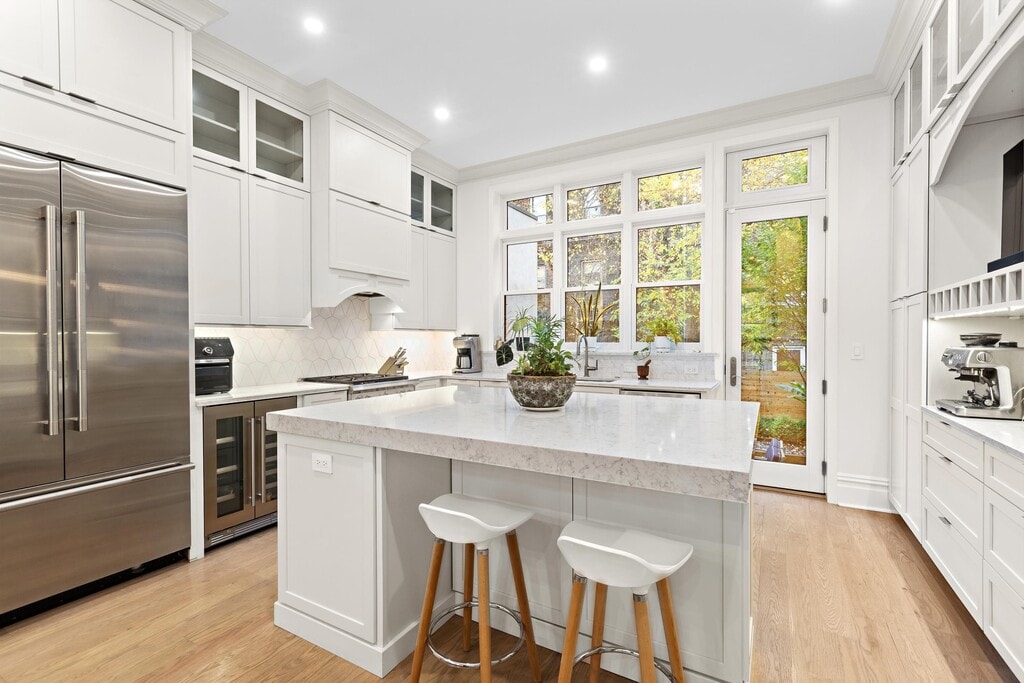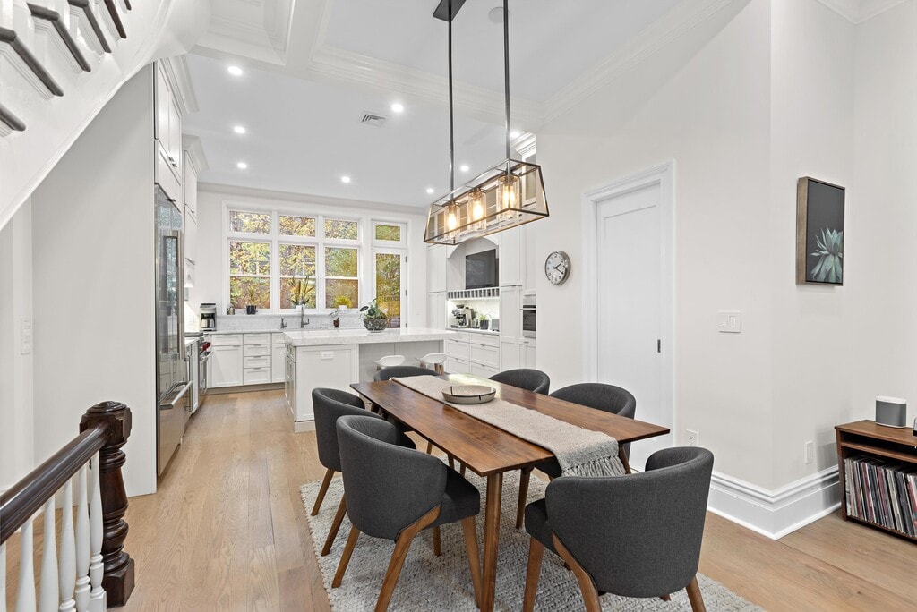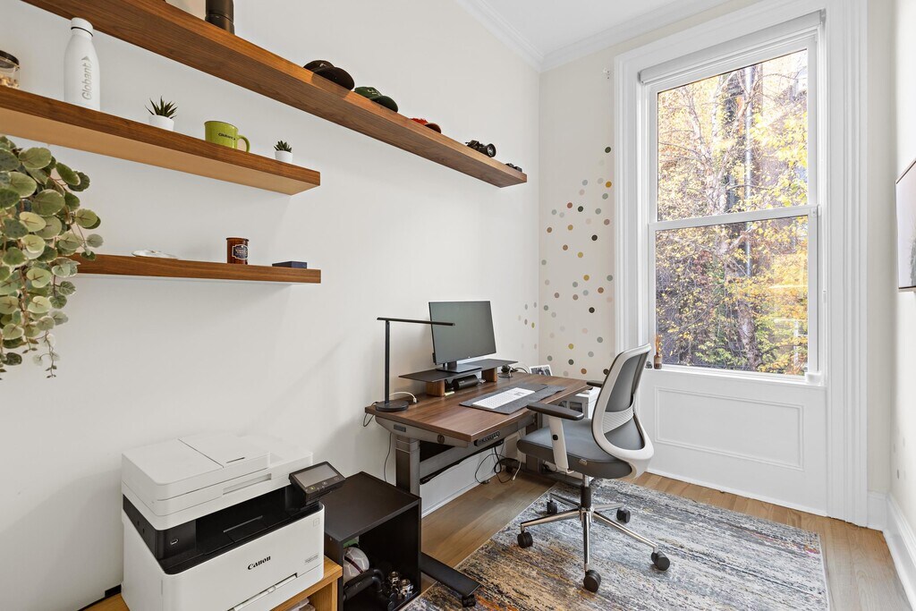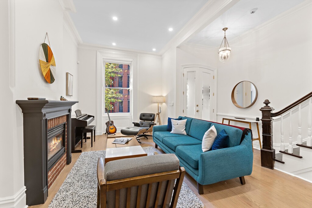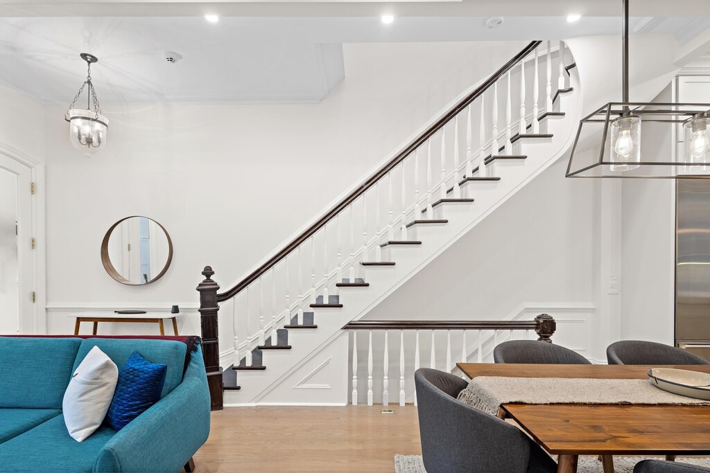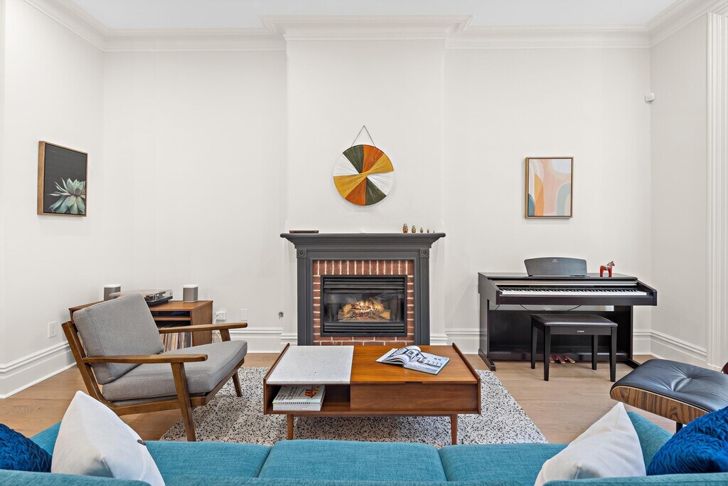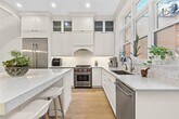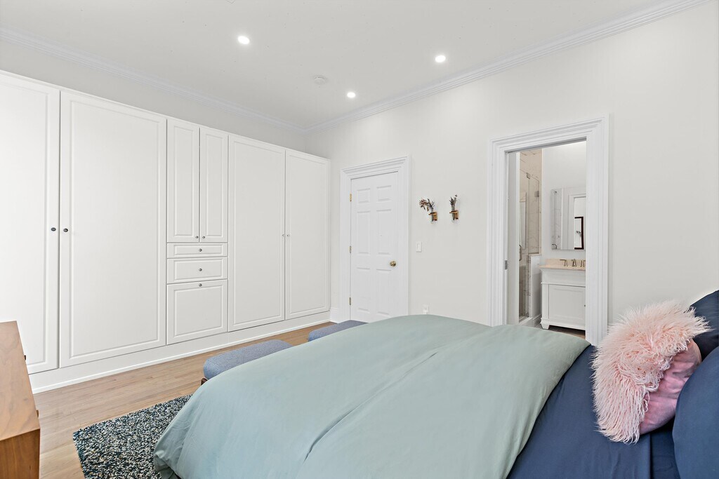 Completely renovated in 2020, this turnkey three-story townhouse is located on one of uptown Hoboken's most coveted tree-lined blocks. This over 17-foot-wide turn-of-the-century home features a spectacular kitchen, four bedrooms and three-and-a-half bathrooms, as well as a professionally landscaped backyard. The well-designed parlor floor has a spacious living area with soaring ceilings and a gas fireplace, a dining area, powder room, and a stunning kitchen with an oversized wall of windows with direct access to the backyard. The chef’s kitchen has modern Omega custom cabinetry, a large island with quartz counters and seating, Wolf range and oven, Wolf convection speed oven, 42 JennAir refrigerator, water filtration system, and garbage disposal. The professionally designed yard has custom lighting, easy to maintain artificial grass, and a raised planting bed at the rear. The top floor features a beautiful master bedroom with a luxurious en-suite bath with a dual vanity, frameless glass shower with porcelain tiles and custom built-in closets; as well as two additional bedrooms and a second full bathroom. The finished garden level includes a family/media room with exposed brick and access to the backyard, large bedroom and a full bathroom. Below is a full height basement with an abundant amount of storage space. Other home features include two zones of central heat/air, hardwood floors throughout, newer Marvin windows, beautifully restored handrails, recessed lighting, washer/dryer, two-year-old roof with ten year warranty, NEST thermostats, smart lighting technology and a Ring doorbell plus alarm system. This home is conveniently located near Hoboken’s 14th Street NY Waterway Ferry and one block from Washington Street’s boutique shopping, restaurants and the NJ Transit bus route for access to Manhattan’s Port Authority bus terminal in approximately fifteen minutes. There are three rental garages within three blocks of the property. Available February 6th."