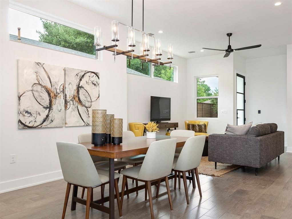 Lightly lived in condo on the bustling east side. Open concept main floor, living room, kitchen with huge island, white upper/lower cabinets, SS appliances, separate laundry room with use of the washer/dryer. Lovely covered back porch looks out on a fully fenced shaded backyard. Second floor primary ensuite as well the two secondary bedrooms that share a bath. MLS ID 6136955