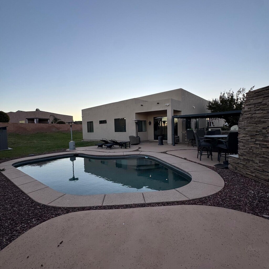 Experience elevated living in this stunning 3 bedroom 2 1/2 bath home with a studio one bedroom casita with a full-size bathroom. perfect for guests, family or a home office. This Luxury rental is resort-style with a crystal-clear pool and built in barbeque for outdoor living. Spacious and expansive backyard. Kitchen is a chefs dream with upgraded appliances and ultimate space for cooking and dining. Rent this Luxury home today! Also close to shopping and the freeway.