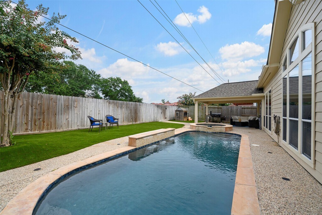 ONE STORY,almost 3,000 sq ft brick home awaits! Featuring 4 bedrooms,3 bathrooms,2 flex rooms,and a formal dining room. An abundance of windows allows for natural light to cascade throughout this open concept home. HEATED SALTWATER POOL and SPA. An oversized covered patio and artificial turf also adorns the backyard. PERMANENT OUTDOOR LIGHTING (can change with the holidays),and a GENERATOR PLUG are just a few of the great features of this home. Centrally located in the most desirable area of Cypress! Walk or cart your kids to school,the lake,or the park. Enjoy the nearby Towne Lake Boardwalk and Bridgeland Central. Contact me for more information and to schedule a showing today! MLS# 85092756