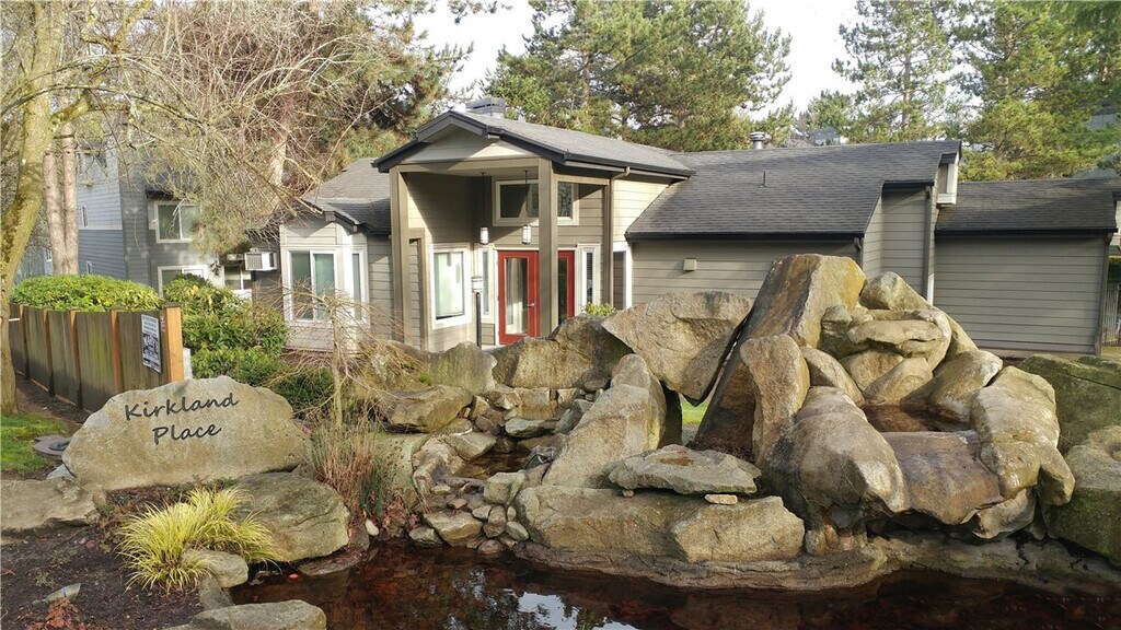Highly desirable top floor end unit condo. Two graciously sized bedrooms, one full bath, great open living space with dining area, cathedral ceilings and sliding door to deck with extra storage closet. Wood-burning fireplace to enjoy in the winter and a pool for the summer fun. Close to shopping, freeways, schools, parks, Lake Washington, medical centers, and all Kirkland has to offer. Kitchen features granite counter tops, dishwasher and appliances. Washer and dryer included in the unit. Relax on your private recently remodeled deck seeing only trees and a pond out back. New double windows and front door. Covered parking included just outside your door. Also an onsite exercise room. $75k+ and 700+ credits score annual income required. Welcome to Kirkland Place! Clubhouse with fitness room. Has carport and ability rent additional space. Close to I-405/bus lines, shopping & restaurants.