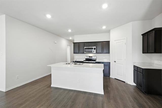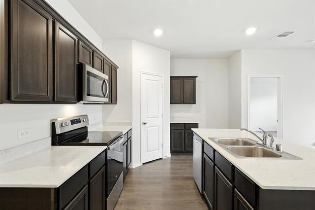 Mansur LaljiFabulous three-bedroom, two-bath home is in the Enclave at Pecan Creek. It has a gourmet kitchen with upgraded finishes and stainless steel appliances, a large island, wood-like flooring throughout, and designer-inspired paint colors. Fresh paint through this almost new home.