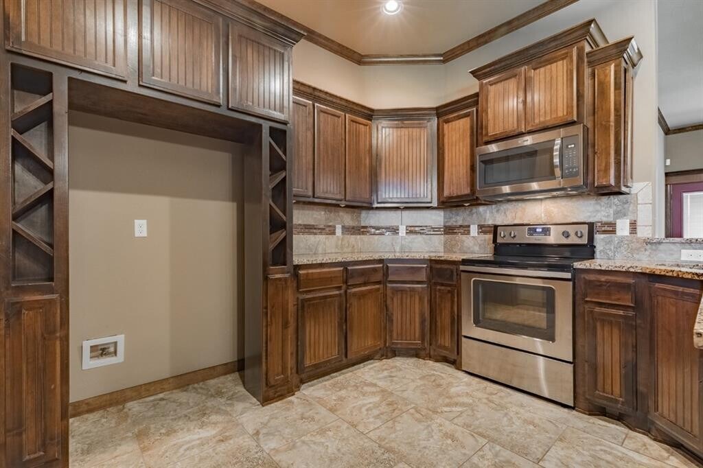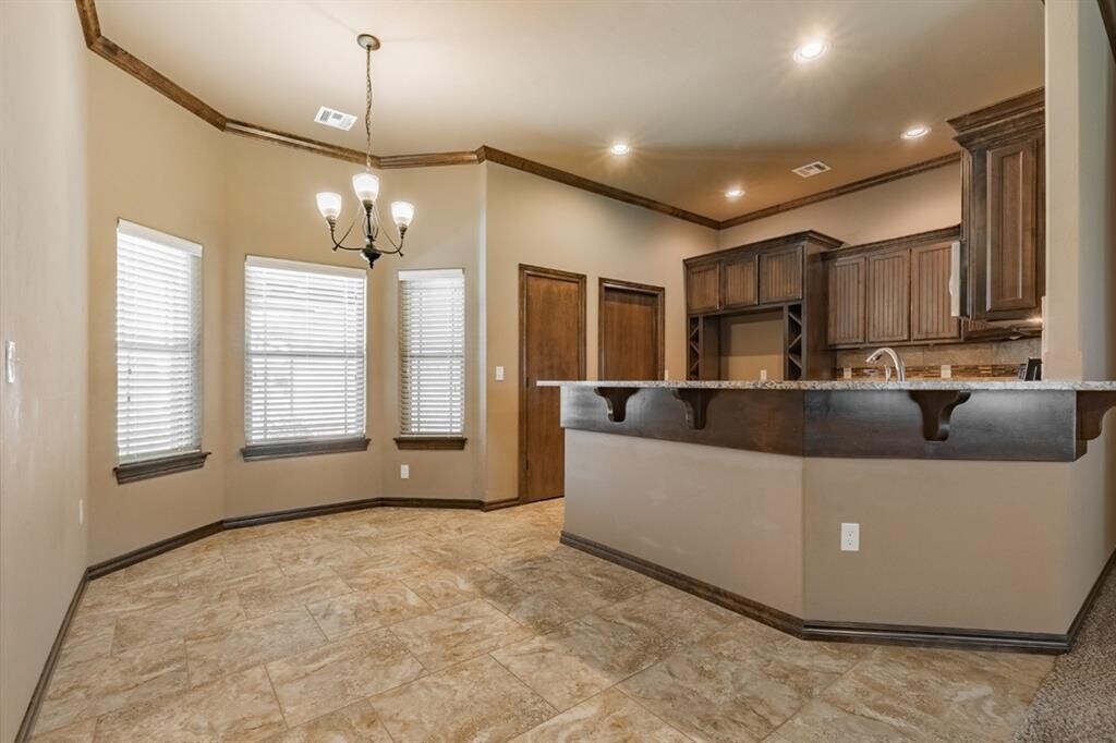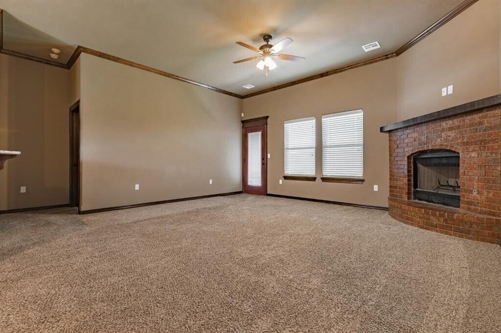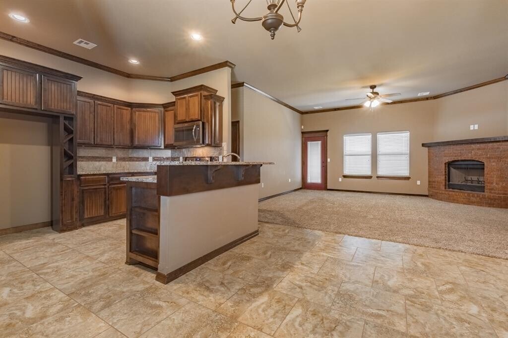 Beautiful home for lease in the heart of Yukon with easy access to I-40 and the Kilpatrick Turnpike. This beautiful home features an open kitchen concept with a cozy dining area and breakfast bar. Built-in microwave,big pantry,and granite counters. Lots of cabinets and counter space. Living room has a real wood burning fireplace and lots of windows. Spacious Master with duel vanity,a separate shower,whirlpool tub and large walk-in closet. Split floor plan with two other bedrooms. Large backyard privacy fenced,as well as a covered patio. All this plus a 3 car tandem garage that opens to a concrete slab in the backyard. Makes mowing a breeze! All this plus a neighborhood park,pond & splash pad! No pets,Minimum 600 credit score,1 year lease.