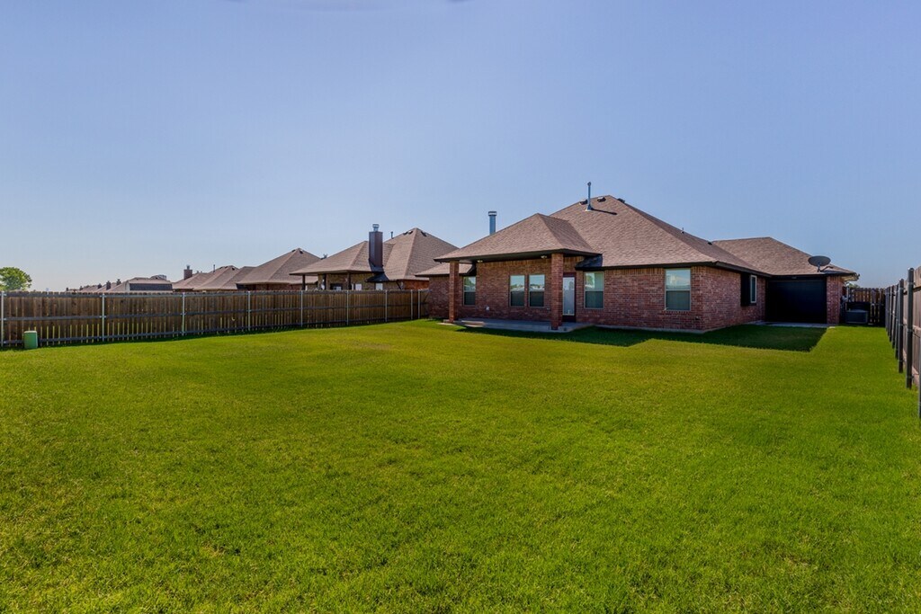 Beautiful home for lease in the heart of Yukon with easy access to I-40 and the Kilpatrick Turnpike. This beautiful home features an open kitchen concept with a cozy dining area and breakfast bar. Built-in microwave, big pantry, and granite counters. Lots of cabinets and counter space. Living room has a real wood burning fireplace and lots of windows. Spacious Master with duel vanity, a separate shower, whirlpool tub and large walk-in closet. Split floor plan with two other bedrooms. Large backyard privacy fenced, as well as a covered patio. All this plus a 3 car tandem garage that opens to a concrete slab in the backyard. Makes mowing a breeze! All this plus a neighborhood park, pond & splash pad!