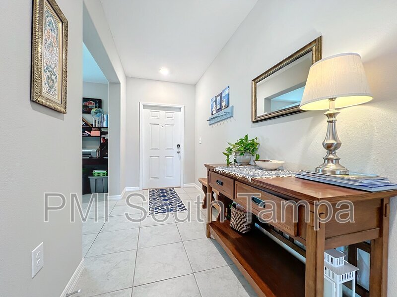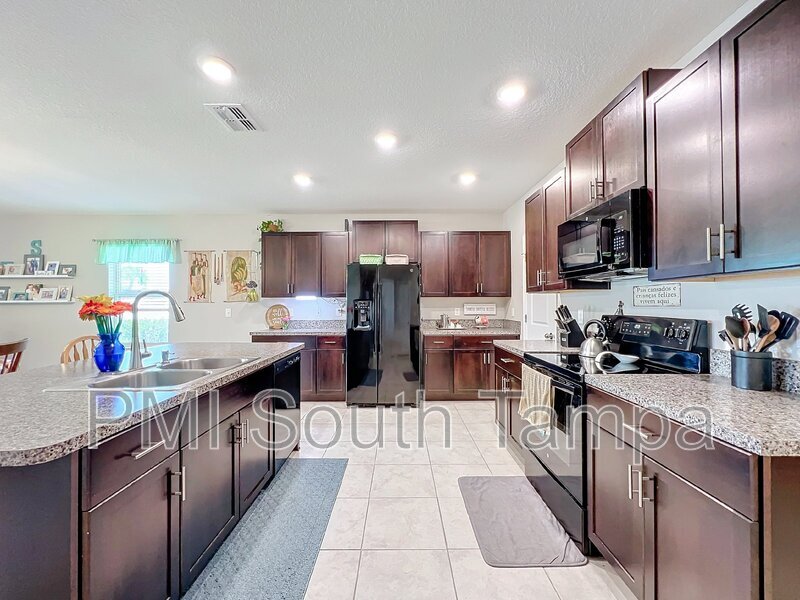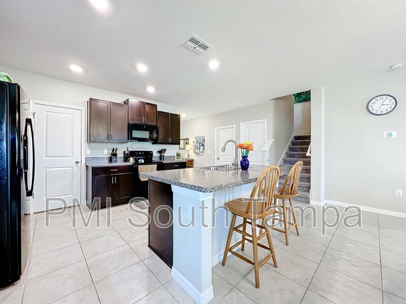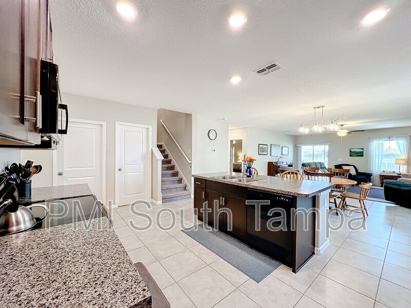 Sunny AlexanderSpacious 5-Bedroom Residence with Water Views! Welcome to your dream home! This two-story residence boasts 5 bedrooms and 3 baths, situated in a serene neighborhood with a water view. The main floor features a spacious kitchen with abundant countertop and cabinet space, seamlessly connected to the dining area and living room with tile flooring. The primary bedroom, complete with an ensuite bath featuring dual vanities and a large walk-in closet, offers convenience and luxury on the ground level.Venture upstairs to discover four additional bedrooms and a versatile loft space, perfect for accommodating guests or creating a cozy retreat. Step outside onto the screened-in lanai, where you can unwind and relish the tranquil ambiance overlooking the picturesque neighborhood pond and scenic walking trail.Don't miss the opportunity to make this exceptional property your own schedule a showing today and experience the epitome of comfort and style!