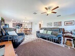 Welcome to your dream home! This two-story residence boasts 5 bedrooms and 3 baths, situated in a serene neighborhood with a water view. The main floor features a spacious kitchen with abundant countertop and cabinet space, seamlessly connected to the dining area and living room with tile flooring. The primary bedroom, complete with an ensuite bath featuring dual vanities and a large walk-in closet, offers convenience and luxury on the ground level. Venture upstairs to discover four additional bedrooms and a versatile loft space, perfect for accommodating guests or creating a cozy retreat. Step outside onto the screened-in lanai, where you can unwind and relish the tranquil ambiance overlooking the picturesque neighborhood pond and scenic walking trail. Don't miss the opportunity to make this exceptional property your own – schedule a showing today and experience the epitome of comfort and style!