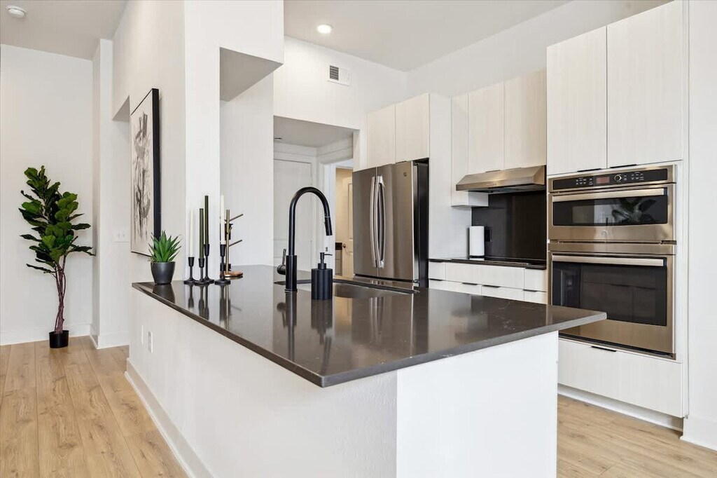 This ultra-stylish luxury apartment is the perfect spot for a family of four or a small group of friends wanting something central and walkable in one of Houston's most vibrant neighborhoods, Montrose. This professionally managed designer-furnished unit offers a perfect balance between residence and resort. This stunning and spacious two-bedroom apartment is furnished in a modern and chic style. It is ideal for corporate executives or families relocating to Houston. The apartment features two full baths, a dining room table for six, a gourmet chef’s kitchen, and all the essentials to check in and start living. As a guest here, you'll have full access to the resort pool, 24/7 techno gym, instructor-led classes, and coffee and cocktail bar. Please comply with all community policies and guidelines during your stay. Parking policies are strictly enforced and towing will occur if you're parking out of compliance. Please be respectful of our neighbors and associates. [SI]
