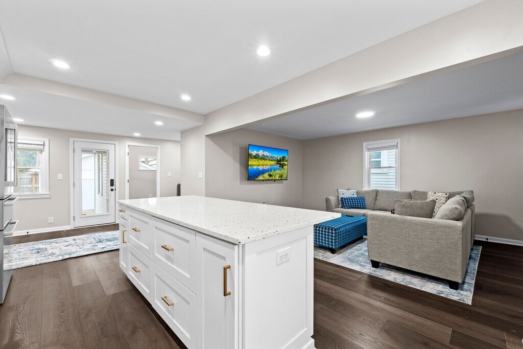 Fully remodeled three-bedroom, two full-bath home in a prime Schnitzelburg location! The open concept interior offers LVP flooring, new windows, in home laundry, and a gourmet kitchen with a gas range and a large island for entertaining. A rare four-car garage adds exceptional flexibility and storage. Outside, enjoy a private backyard with a large covered porch and full privacy fencing. With access to all of Schnitzelburg's restaurant and local entertainment, this home is a must see!