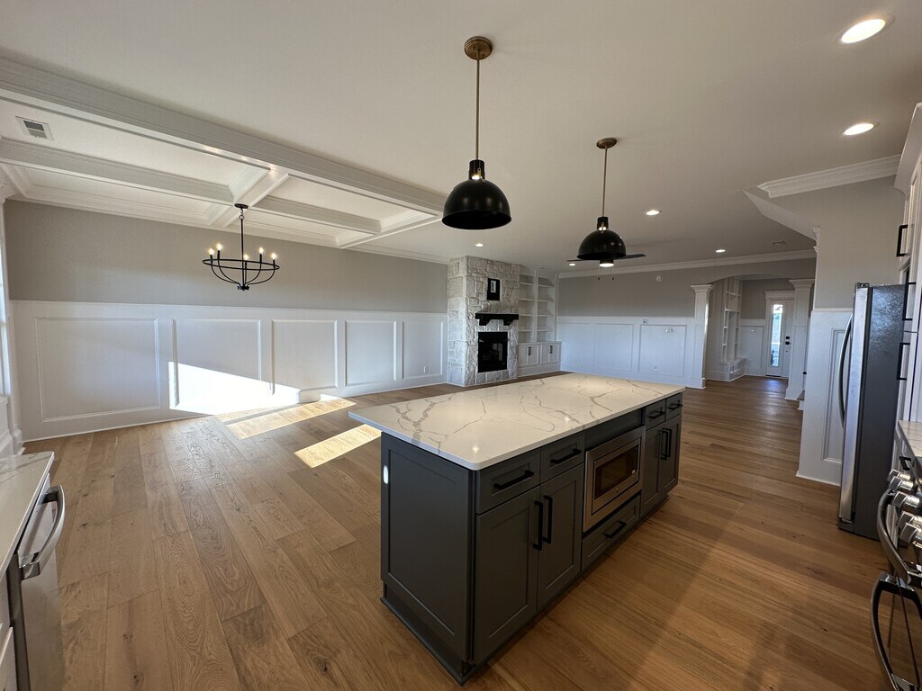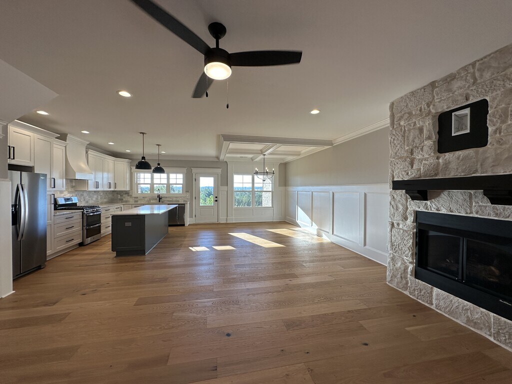 This like-new 3-bedroom villa offers upscale, low-maintenance living with thoughtful design throughout. Step inside to a functional drop zone—perfect for keeping coats, shoes, and bags organized—before entering the open-concept main level with seamless sightlines and abundant natural light. The great room is both inviting and practical, featuring a gas fireplace, custom mantle with TV mount, and built-in shelving for added storage. The chef-inspired kitchen is a standout, complete with marble countertops and backsplash, a gas range with double oven, and a spacious walk-in pantry. Upstairs, you'll find a versatile flex space ideal for a home office, media area, or playroom, along with a full-size laundry room for added convenience. The primary suite is a true retreat, offering two large walk-in closets and a private bath with double vanities and an oversized glass shower featuring dual shower heads. Available June as the current tenants prepare to move out. Don't miss your chance to make this exceptional home yours!