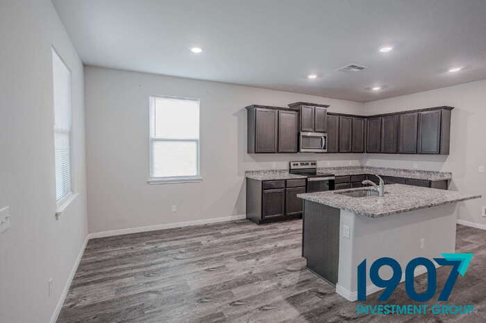 Stunning Modern 3-Bedroom Home in Newcastle - Built for Comfort! Welcome to this beautifully maintained 1632 sq ft home located at 1112 NW 6th St in Newcastle, OK 73065. This contemporary property offers a spacious and open layout with three bedrooms and two full bathrooms, ideal for modern family living. Step inside to a bright, open-concept main living area. The space features a combination of plush carpeting and sleek wood-look flooring, a contemporary color palette, and a ceiling fan. The kitchen is the heart of the home, boasting a functional island, dark wood cabinetry, and contrasting light granite-style countertops. It is fully equipped with stainless steel appliances including a built-in microwave and an electric range, perfect for any home chef. The primary bedroom is generously sized with soft carpeting and a ceiling fan. The en-suite bathroom is a highlight, featuring a stylish vanity with a single sink and long countertop, a private toilet area, and a large walk-in shower with a glass enclosure. The spacious walk-in closet provides excellent storage. The dedicated laundry room offers convenient wire shelving and hookups. Outside, the home presents fantastic curb appeal with a mixed material exterior and a deep, covered two-car garage. The backyard is fully fenced, offering a private outdoor area with a brick exterior, ready for your enjoyment. Located in a desirable Newcastle community, this newer home offers a quiet setting with easy access to local amenities and major transportation routes. Key Features: *1632 sq ft *3 Bedrooms *2 Full Bathrooms *Open-concept living with modern finishes *Stylish kitchen with island, dark cabinets, and granite-style counters *Luxurious primary bathroom with large walk-in shower *Spacious walk-in closet *Dedicated laundry room *Fully fenced backyard *Two-car attached garage This immaculate home is a perfect blend of style and function! Contact us today to schedule a showing. Contact us to schedule a showing.