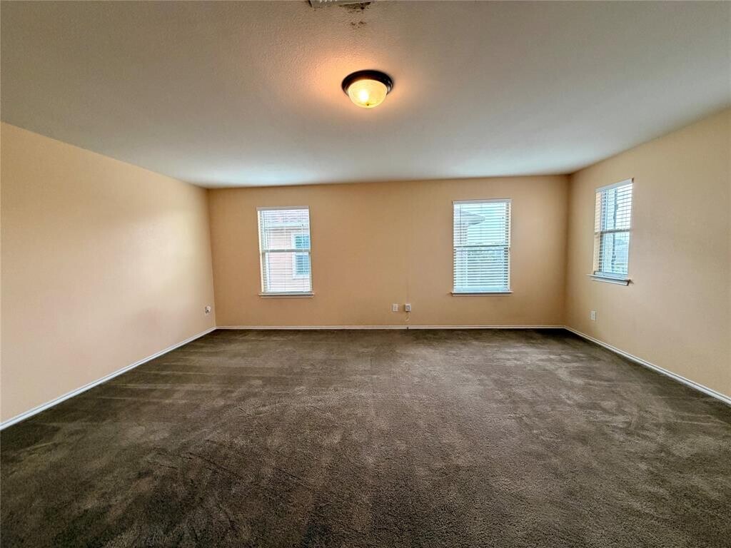 Spacious 4 bedroom, 2.5 bathroom home with a 2 car garage located just off I-35, offering an ideal commute. The primary suite is conveniently situated on the main level and has a dual vanity bathroom, tub and separate shower. The home features two living areas plus a large upstairs flex space, providing endless options for entertaining, work, or play. Enjoy the private covered patio overlooking a greenbelt with no rear neighbors. Community amenities include neighborhood trails and outdoor spaces for recreation.