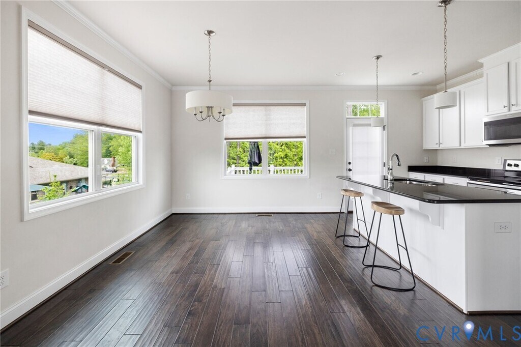 Welcome to Bedford Falls @Hickory Grove - A 'Move-in' condition 3 Bedroom,3.5 Bathroom Townhome! This home has 2074 finished square feet on three levels,plus a 1-car garage! 1st Level includes welcoming foyer,large hall closet,access to 1-car garage and 1st floor guest or primary suite with full bath,with access to rear patio and fenced rear yard. The 2nd level offers open layout with Family Room,Dining Room and Kitchen with access to rear deck. The 3rd level delivers 2nd Primary Suite with large walk-in closet,primary bath with glass shower with built-in bench & double vanity; 3rd Bedroom with ensuite full bath and double closet; laundry room with mud sink and front loading washer & dryer; and large hall linen closet. Hardwood Floors on 1st and 2nd levels and 3rd level Hall,with Carpet in 3rd Level Bedrooms,Tile in Laundry and Bathrooms. 12' X 20' rear deck,Pull Down Attic; dual-fueled 2 zoned HVAC system. Yard is maintained by the association,irrigation system in place as well. Ideally located near Interstate 64 & 295 on the Nuckols Road corridor convenient to shopping,restaurants and great local schools!