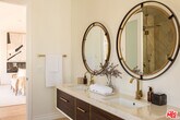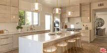 Located north of Wilshire in prime Brentwood, 1113 Amherst Avenue is a custom-built home originally constructed in 2010 and fully remodeled in 2024. Offering exceptional value for a move-in-ready residence in one of Los Angeles' most desirable neighborhoods, this property spans nearly 5,000 square feet of living space on a 6,000 square foot lot. Upstairs, the home features four spacious bedrooms, including two oversized suites that could serve as dual primaries. One suite includes a balcony, separate seating area, its own laundry room, and a walk-in closet. The other primary suite features a fireplace, spa-like bath and shower, and upgraded finishes. On the entry level, a versatile bedroom with a full bath provides privacy from the main sleeping quarters and can easily serve as a guest suite, home office, or bonus room. The chef's kitchen is equipped with Sub-Zero, Wolf, and Miele appliances, quartz countertops, travertine floors, an oversized refrigerator, a large center island, and a walk-in pantry. The kitchen opens seamlessly to the dining and living areas and out to the backyard, creating an ideal setting for entertaining or everyday living. Designed for modern lifestyles, the home includes smart technology with Sonos sound, a security system, and climate controls. A two-car garage provides added convenience, while the location offers an unbeatable walkability factor with close proximity to the Brentwood Country Mart, Erewhon, Montana Avenue shops, world-class restaurants, and top-rated Brentwood schools. This is a rare opportunity to own a remodeled home of this scale and quality in Brentwood at an outstanding value. MLS# 25580799