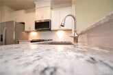 Come visit this luxurious and immaculate Durham end unit townhome available for immediate occupancy and sure to please! Its interior is full of high-end finishes and fixtures, and it boasts a floorplan that not only works perfectly for today's lifestyle, but is also unique in ways that set it apart from so many other cookie cutter" homes out there. Upon entry into the foyer, you're greeted by a lovely interior filled with gleaming luxury plank floors and extensive molding and trim. An exposed staircase with wood treads is a neat feature and adds to the elegance this home exudes. Down the hall a bit further you'll enter the living spaces that include a perfectly proportioned dining area adjacent to a family room boasting four picture windows, recessed perimeter accent lighting and provisions for a wall-mounted TV. The open-concept theme continues as you enter the kitchen showcasing beautiful granite counters atop timeless white craftsman-style cabinetry that glisten from the under-cabinet lighting. A subway tile backsplash accentuates the counters and also make clean up a breeze. You'll love the single bowl undermount stainless steel sink as well as the massive pass-through to the dining area with a granite-topped ledge. A full suite of high-end Whirlpool stainless-steel appliances are as attractive as they are functional. You'll find a gas oven, a built-in microwave, a dishwasher and a refrigerator with ice and water in the door. The kitchen is also home to a pantry, a breakfast area and direct access to the attached 2 car garage. Next, head upstairs where you'll find all three bedrooms as well as a conveniently-located laundry room with a washer and dryer included for resident's use. No more hauling laundry up and down the stairs! The primary bedroom showcases a vaulted ceiling, double picture windows, a spacious walk-in closet and a luxurious en-suite bathroom showcasing tiled floors, a linen closet, an elongated and elevated marble-topped vanity with dual undermount sinks, a water closet and a tiled, walk-in shower with a bench. Bedrooms #2 and #3 are both impressive with lovely natural light, ample closet space and easy access to a full hall bathroom with tiled floors, a quartz-topped vanity and a tub/shower. Before concluding your tour, be sure to visit the spacious yard as well as the large patio!"