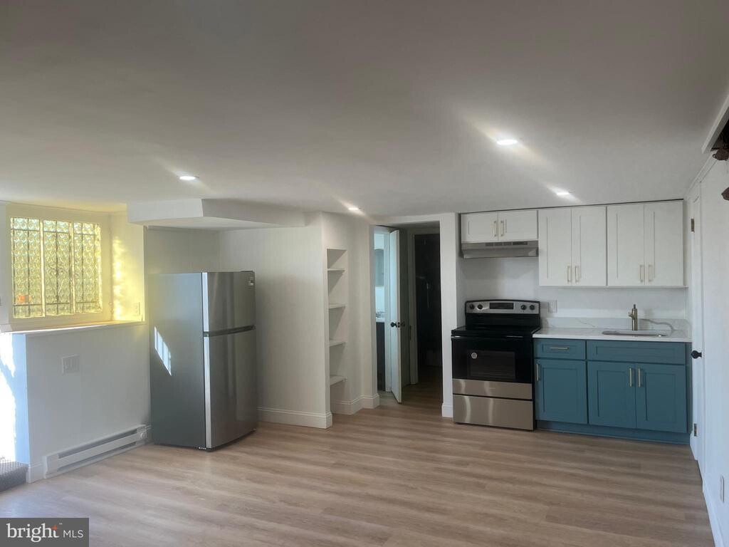 Welcome to this beautifully renovated ground-floor studio apartment at 1113 E Hunting Park Avenue! Everything inside is brand new, featuring luxury vinyl plank flooring throughout, recessed lighting, and a brand-new kitchen with shaker-style cabinets, Quartz countertops, and a classic subway tile backsplash. The modern bathroom offers a new vanity and a sleek stall shower for a clean, contemporary feel. This spacious studio includes two private entrances (side and rear) for added convenience and privacy. Enjoy free laundry with a washer and dryer provided right on-site. Water is included in the rent, and tenants are responsible only for electric — no gas here, and the unit is separately metered for your peace of mind. Conveniently located close to shopping, public transportation, major roadways, schools, and local restaurants — this apartment offers easy access to everything you need. Move right in and enjoy low-maintenance city living in a fully updated space! No pets permitted.
