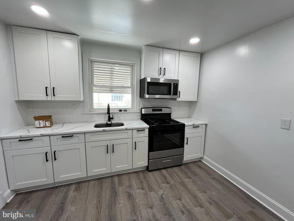 Welcome to this beautifully renovated 1st-floor 2-bedroom apartment at 1113 E Hunting Park Avenue! Everything inside is brand new, featuring luxury vinyl plank flooring throughout, recessed lighting, ceiling fans and a brand-new kitchen with shaker-style cabinets, Quartz countertops, and a classic subway tile backsplash. The hall bathroom offers a new vanity and a soaking tub/showercombo for a clean, contemporary feel. The rear of the unit hosts 2 spacious bedrooms, both with ceiling fans and closets. Enjoy free laundry with a washer and dryer provided right on-site. Water is included in the rent, and tenants are responsible for their own electric and gas, and the unit is separately metered for your peace of mind. Conveniently located close to shopping, public transportation, major roadways, schools, and local restaurants — this apartment offers easy access to everything you need. Move right in and enjoy low-maintenance city living in a fully updated space! No pets permitted.